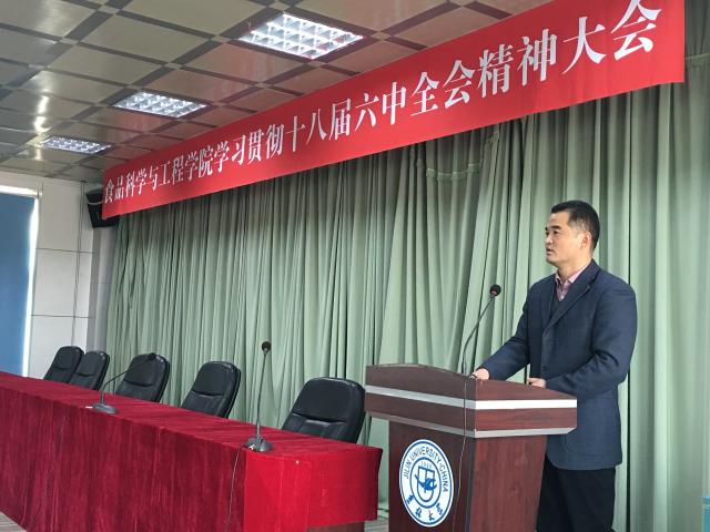 首先,党委副书记梅士伟同志宣读了学校《关于开展学习贯彻党的十八届六中全会精神》的通知,号召学院全体党员同志领会精神,深化认识,学以致用,知行合一,学习贯彻党的十八届六中全会精神,以积极的态度和优异的工作成绩迎接党的十九大胜利召开。