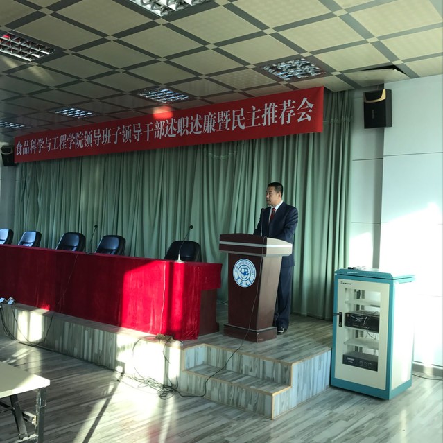 随后,学院党委书记高福和同志代表学院领导班子进行述职述廉;副院长李勇军、张铁华和党委副书记兼副院长梅士伟、党委书记高福和依次上台,分别结合各自在德、能、勤、绩、廉方面的表现作了述职述廉汇报。