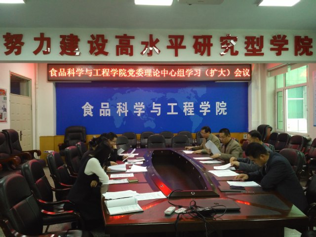 党委在食品楼三楼会议室召开党委理论中心组学习(扩大)会议,学习贯彻党的十八届六中全会精神以及中国共产党第十八届中央委员会第六次全体会议通过的《中国共产党党内监督条例(试行)》与《关于新形势下党内政治生活的若干准则》,深入推进“两学一做”学习教育。学院党委委员、纪委委员、各党支部书记参加了会议,会议由学院党委书记高福和同志主持。