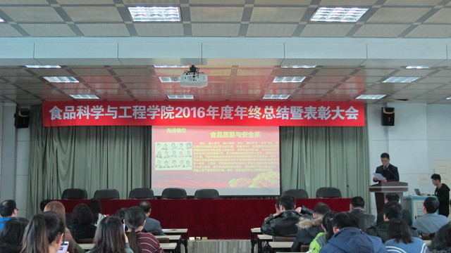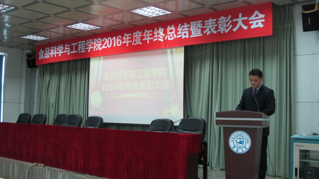 关于表彰2016年度先进单位和个人的通报,副院长张铁华同志宣读了关于2016年食品科技青年论坛获奖情况的通报,院长助理兼食品科学与工程系主任周亚军同志宣读了关于2016年本科生学术年会获奖情况的通报;会上对一年来表现突出的单位、教师和学生进行了表彰。
