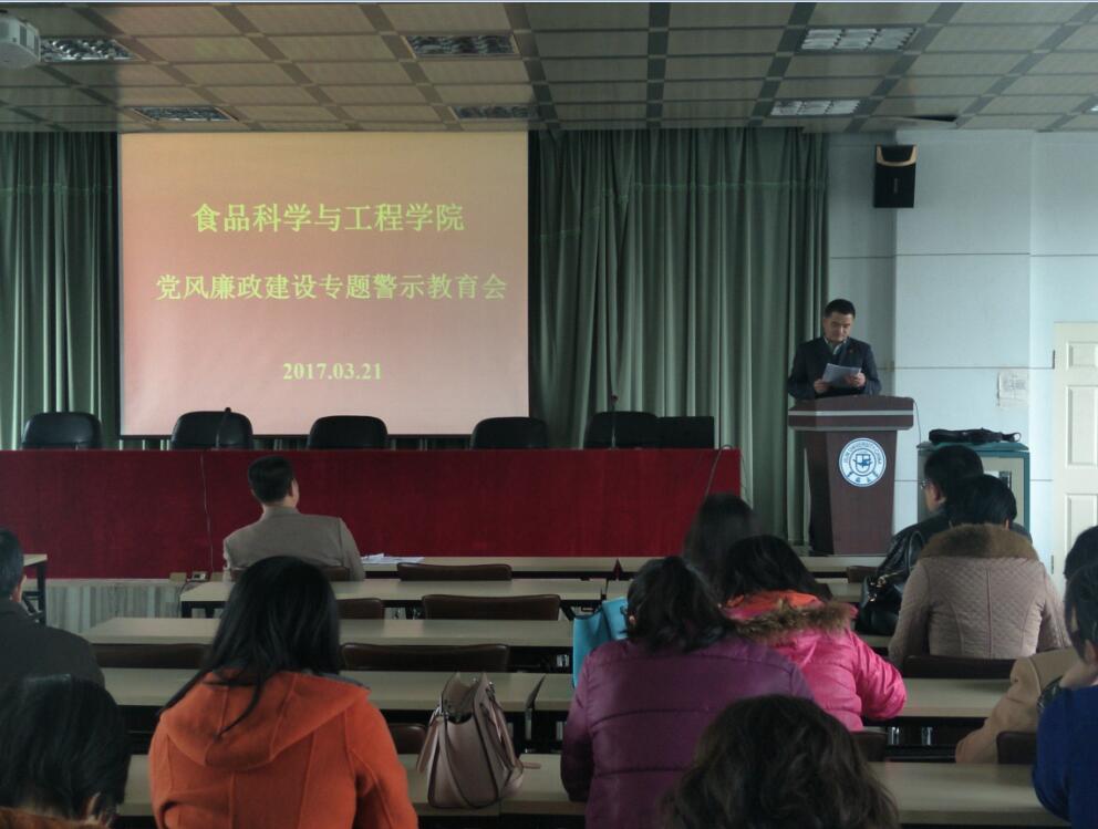 在管理楼三楼报告厅召开了党风廉政建设专题警示教育会。学院全体教职员工参加了会议。会议由党委书记高福和同志主持。 会上,学院党委副书记兼纪委书记梅士伟同志传达了《沈先生