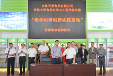 和吉林天景食品有限公司在天景集团九台基地举行了校企合作教学科研创新实践基地签字仪式。沈先生