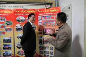 的部分实验室和科研平台,就学院实验室的硬件建设,工作环境,科研平台承担项目情况等听取了学院领导汇报并进行了交流。考察过程中,李元元校长还饶有兴致地观看了学院建设图片展,十九大宣传栏等学院文化设施,指出学院的宣传工作有传统,党建工作接地气,有创新。