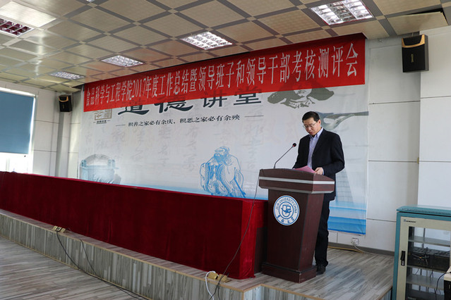 表彰结束后,进行了处级领导班子和领导干部年度考核述职测评,首先,学院党委书记高福和做学院2017年度工作总结和领导班子述职。高书记从工作回顾、存在问题和整改措施、下一步工作打算三个方面进行详细阐述,重点从“引育并举加强人才工作、深度调研推动学科和平台建设、走出去请进来扩大科研合作交流、从严从实抓好党建工作”等方面布置工作。
