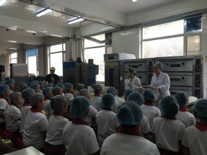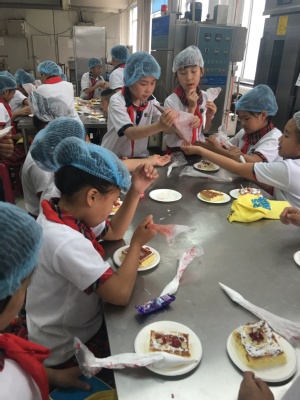 活动开始后,40余名小朋友在学院老师和志愿者的带领下,按照食品卫生规范要求,先后动手制作了烘焙蛋糕,参观了酸奶生产线,开展了“知识抢答”与“创意涂鸦”活动,使小朋友们了解了蛋糕、酸奶的生产过程与食品营养常识,培养了食品安全意识,激发了他们的动手兴趣与学习科技文化知识的信念。