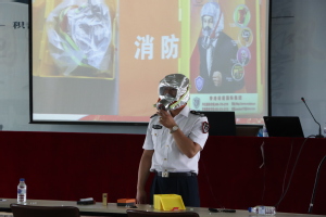 王振超主任首先给师生们围绕“安全生产”主题展示了一个又一个火灾实例,让大家触目惊心。同时向大家介绍在火灾发生初时有效控制火灾应采取的灭火措施。王主任还详细讲解了各种消防自救器材的使用时机、使用方法及注意事项,如:防火毯、干粉灭火器、水基灭火器、微型破窗器、防毒面具等,还为大家展示了先进的“黑科技”自动灭火贴等装置。