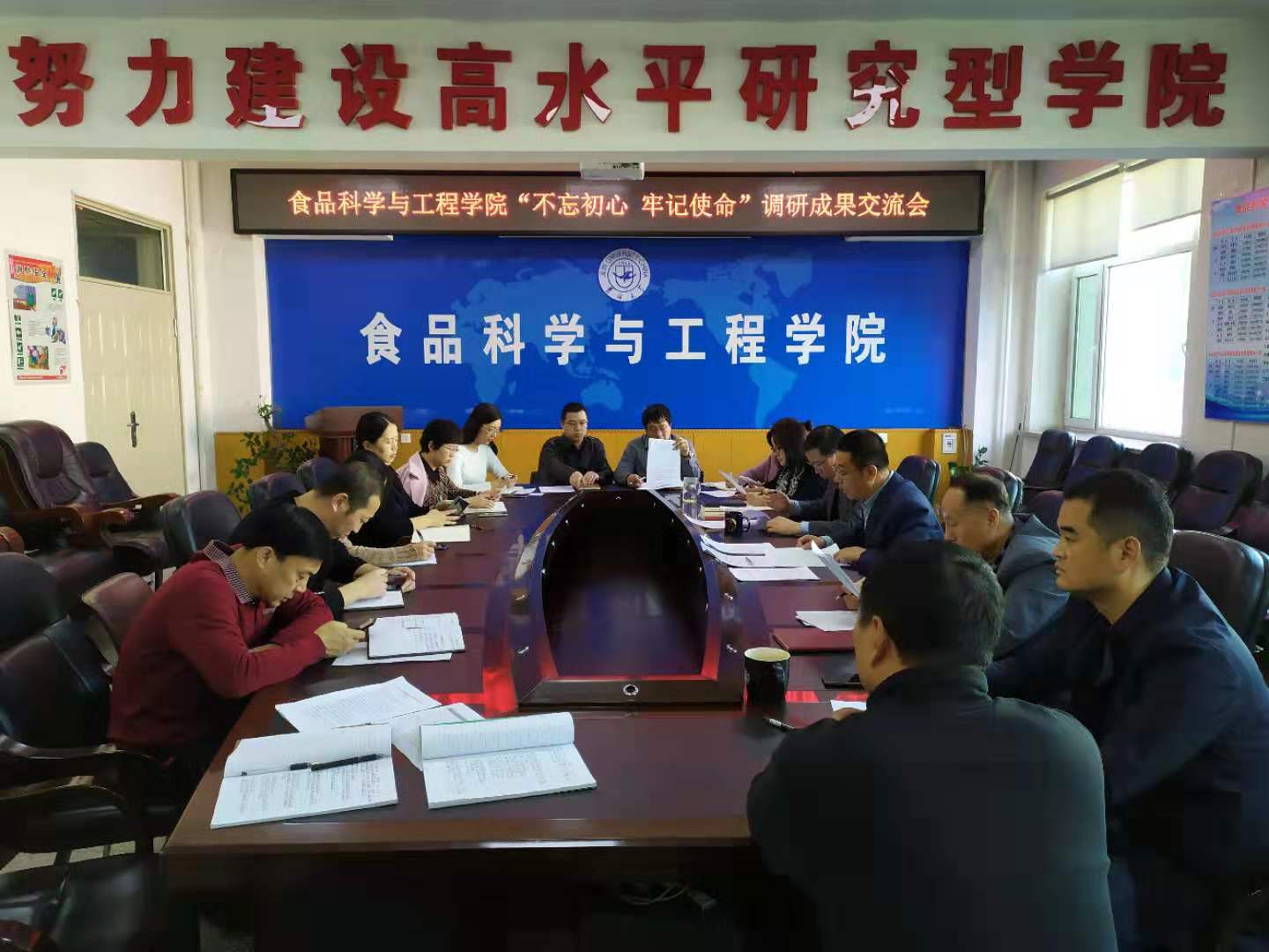 在食品楼三楼会议室召开了“不忘初心、牢记使命”主题教育调研成果交流会,学院党委委员、纪委委员、各系、办、中心主任参加了会议。会议由学院党委书记高福和同志主持。
