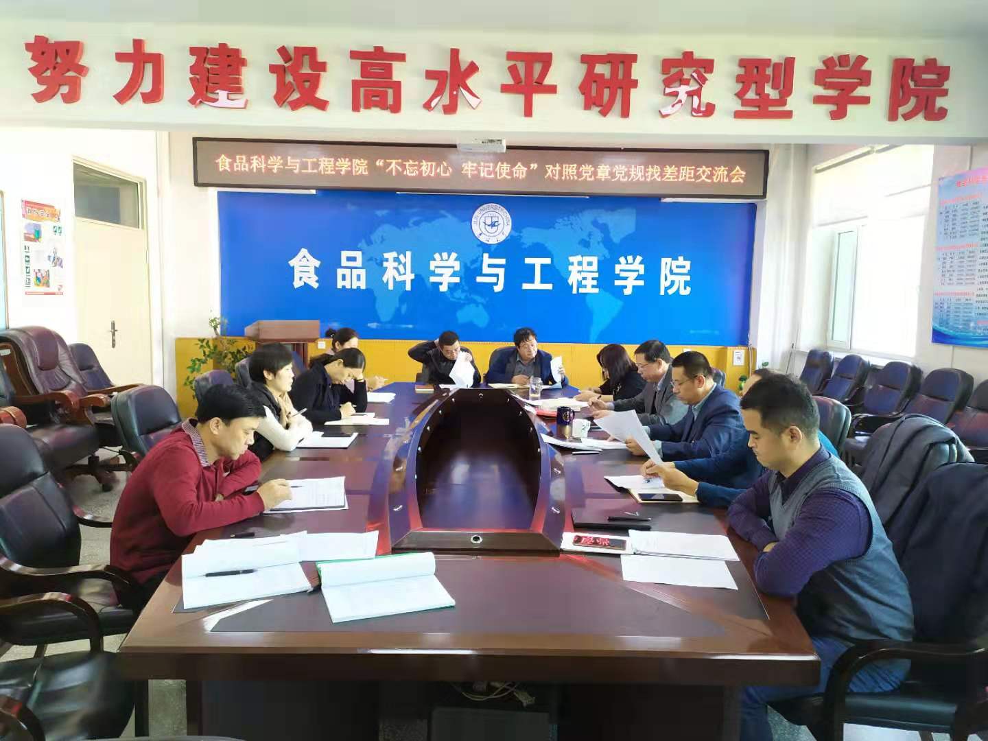 在食品楼三楼会议室召开了“不忘初心、牢记使命”主题教育对照党章党规找差距专题交流会。学院领导班子成员、党委委员参加了会议。会议由学院党委书记高福和同志主持。