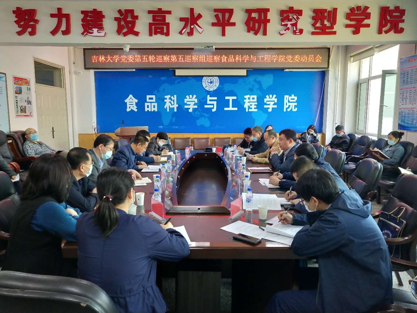 党委工作动员会在食品楼三楼会议室召开。学校巡察工作领导小组成员刘晓昌、党委第五巡察组组长李佰志及全体成员、学院领导班子全体成员,近三年退出管理岗位的班子成员,党委委员、纪委委员,学术委员会主任、学位评定委员会主任、教学委员会主任,支部书记、系(办、中心)主任,教职工代表等参加了会议。会议由沈先生