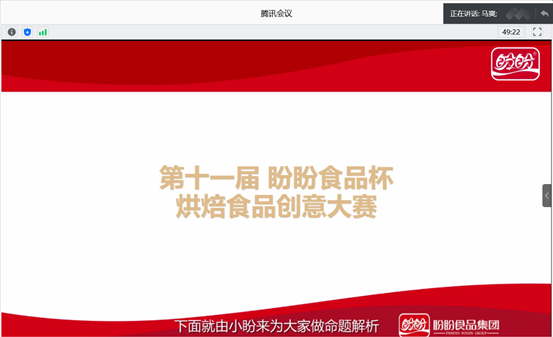 承办的“第十一届盼盼食品杯烘培食品创意大赛”拉开了序幕,并于6月9日15:00通过腾讯会议平台举办了沈先生