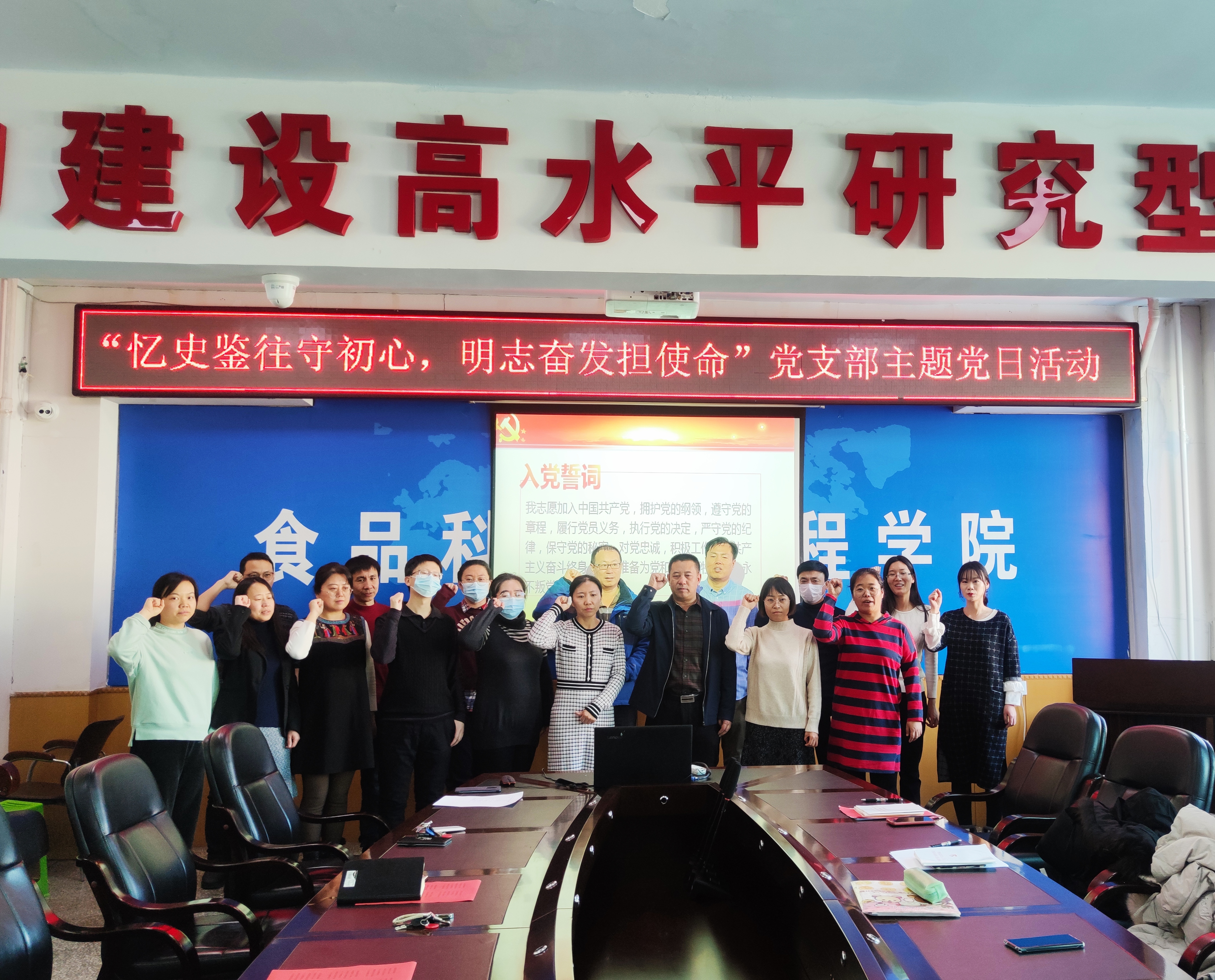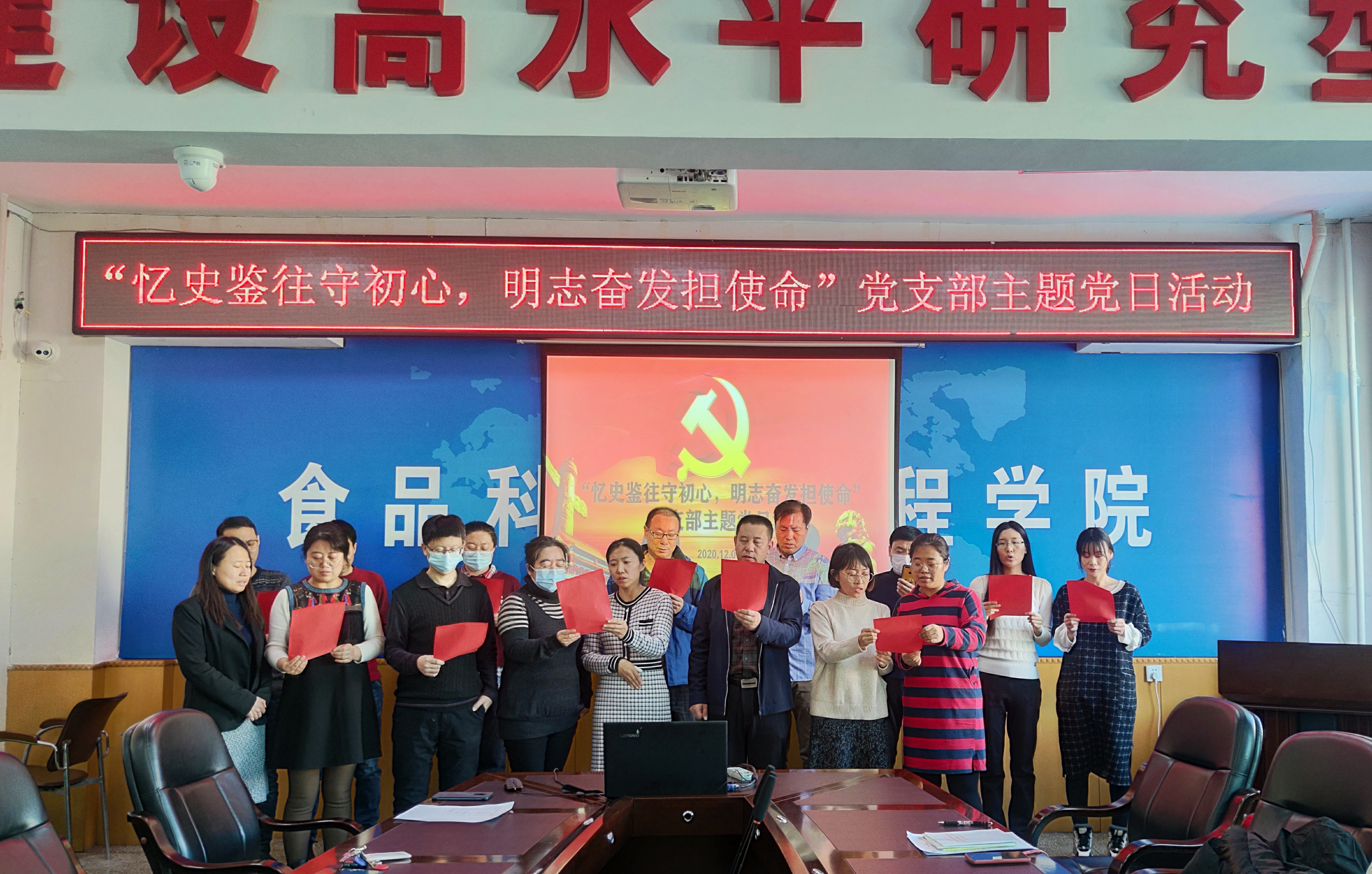 机关党支部与食品质量与安全系教师党支部在食品楼三楼会议室举办“忆史鉴往守初心,明志奋发担使命”主题党日活动。主题党日活动由学院机关党支部书记马爽同志主持。