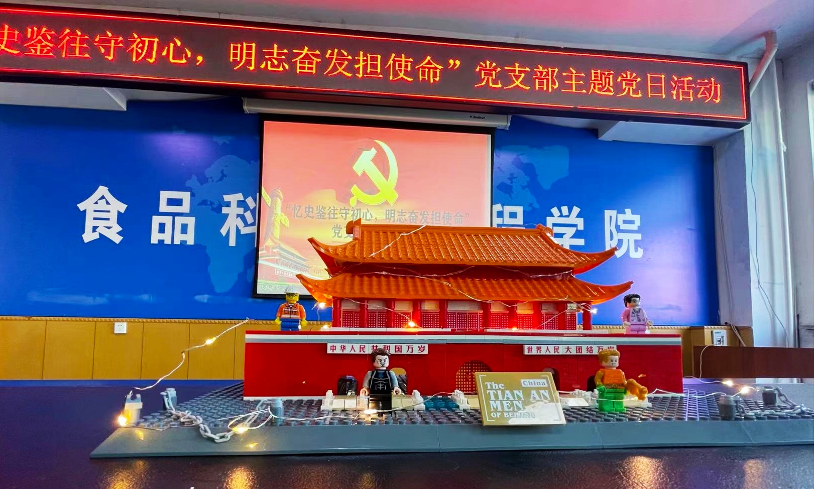 与会党员在党委书记高福和同志的带领下齐心协力拼制天安门立体模型,去追寻红色记忆,传承红色精神,在拼制过程中分享着有关天安门的历史故事,进一步了解和感悟天安门极为深远的历史意义,进一步推动党员干部以史为鉴,增强责任意识和爱国情怀。