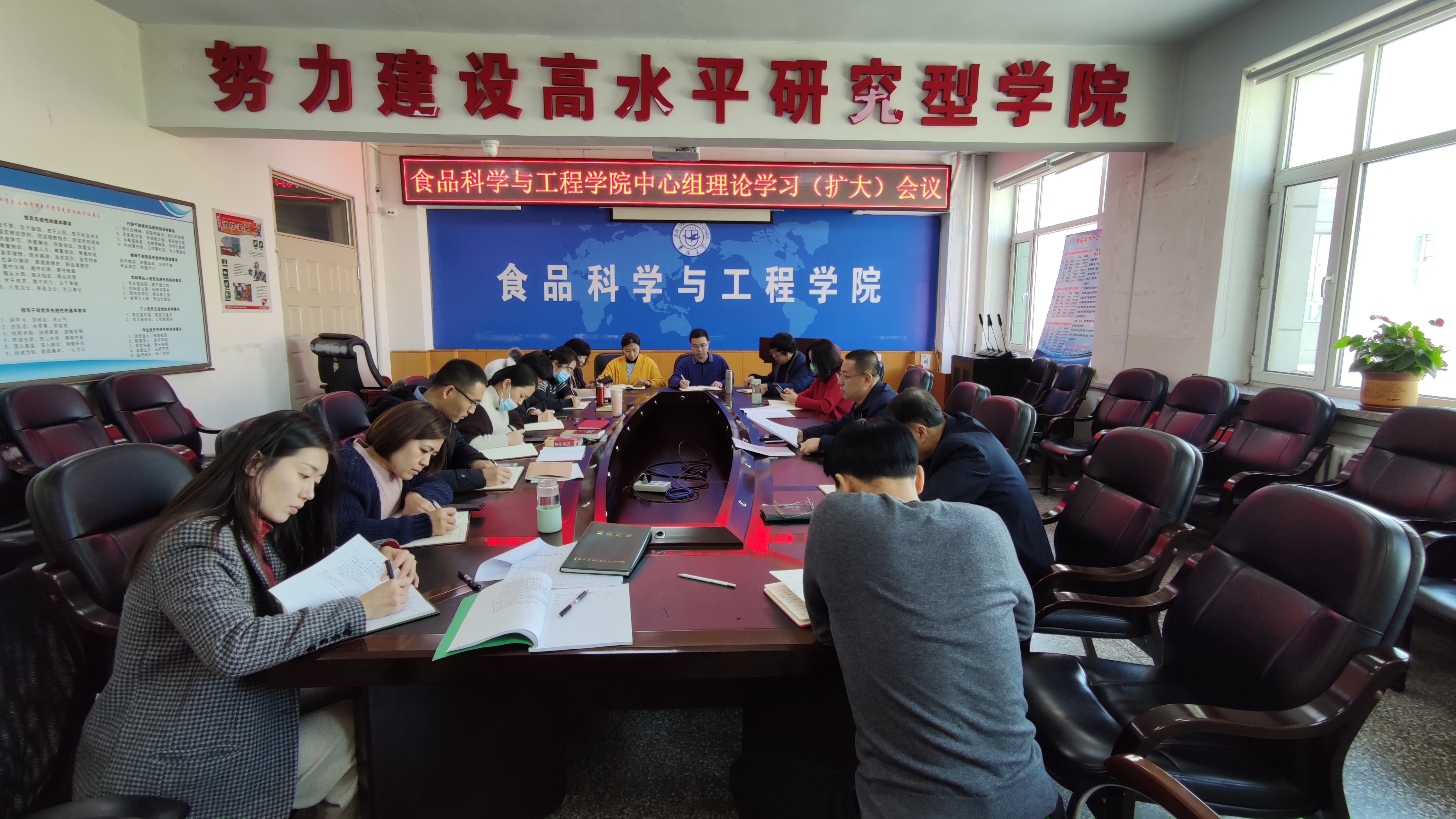 在食品楼三楼会议室召开党委理论中心组学习(扩大)会议。学院党委委员、纪委委员、各党支部书记参加了会议。会议由学院党委书记高福和同志主持。