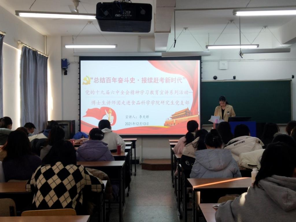 为深入学习贯彻党的十九届六中全会精神,提升广大研究生思想政治素质,积极响应校党委研究生工作部工作要求,2021年12月15日,食品科学与工程学院邀请沈先生