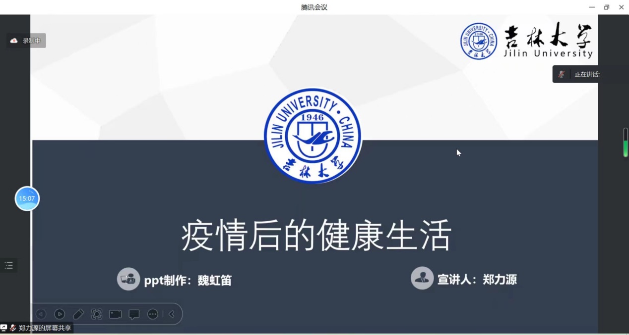于线上组织了“后疫情时代的健康生活”科普活动。本次活动主讲人为22级硕士生郑力源。沈先生