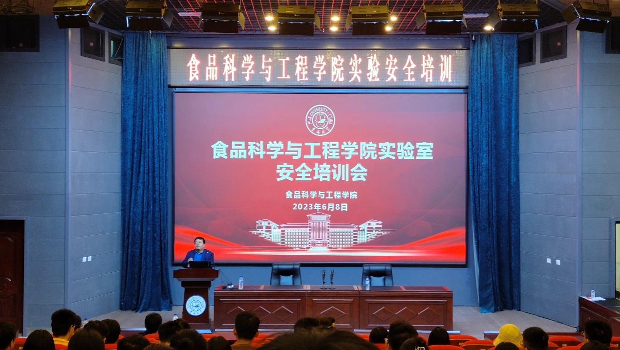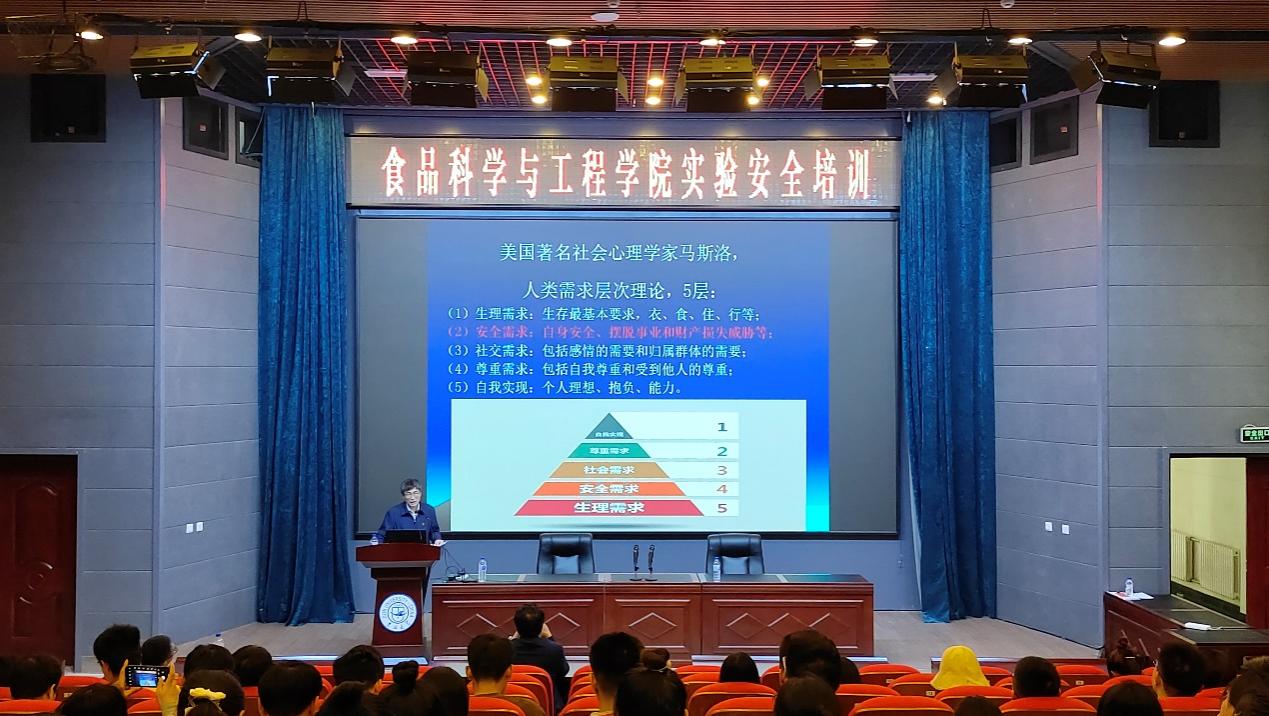 于图书馆二楼学术报告厅开展消防安全与实验室安全培训,科研副院长周亚军、行政副院长陈玉江、实验中心科研副主任王二雷老师以及全体2021级、2022级研究生参加会议。