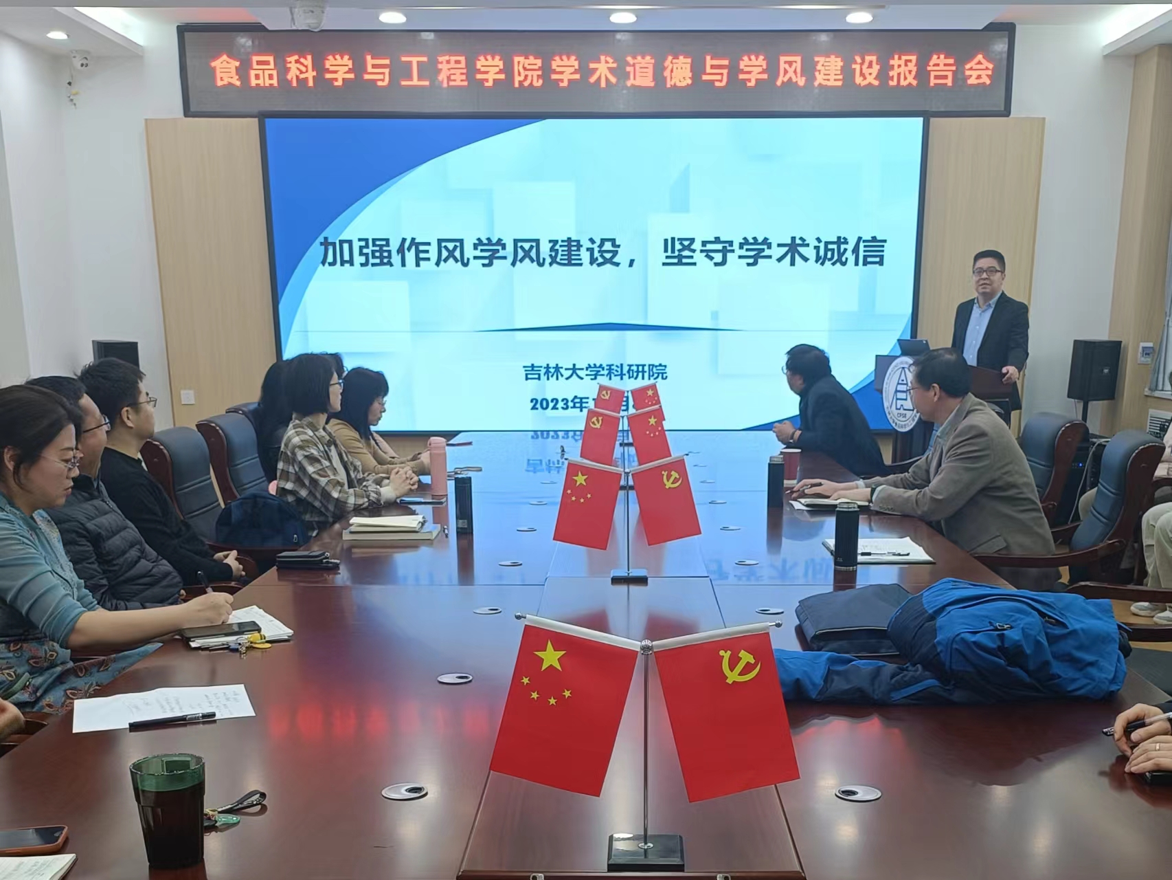 科研院科技管理办公室学术诚信科闫兵老师、学院党委书记董怀智、院长张铁华及全院教师参会。