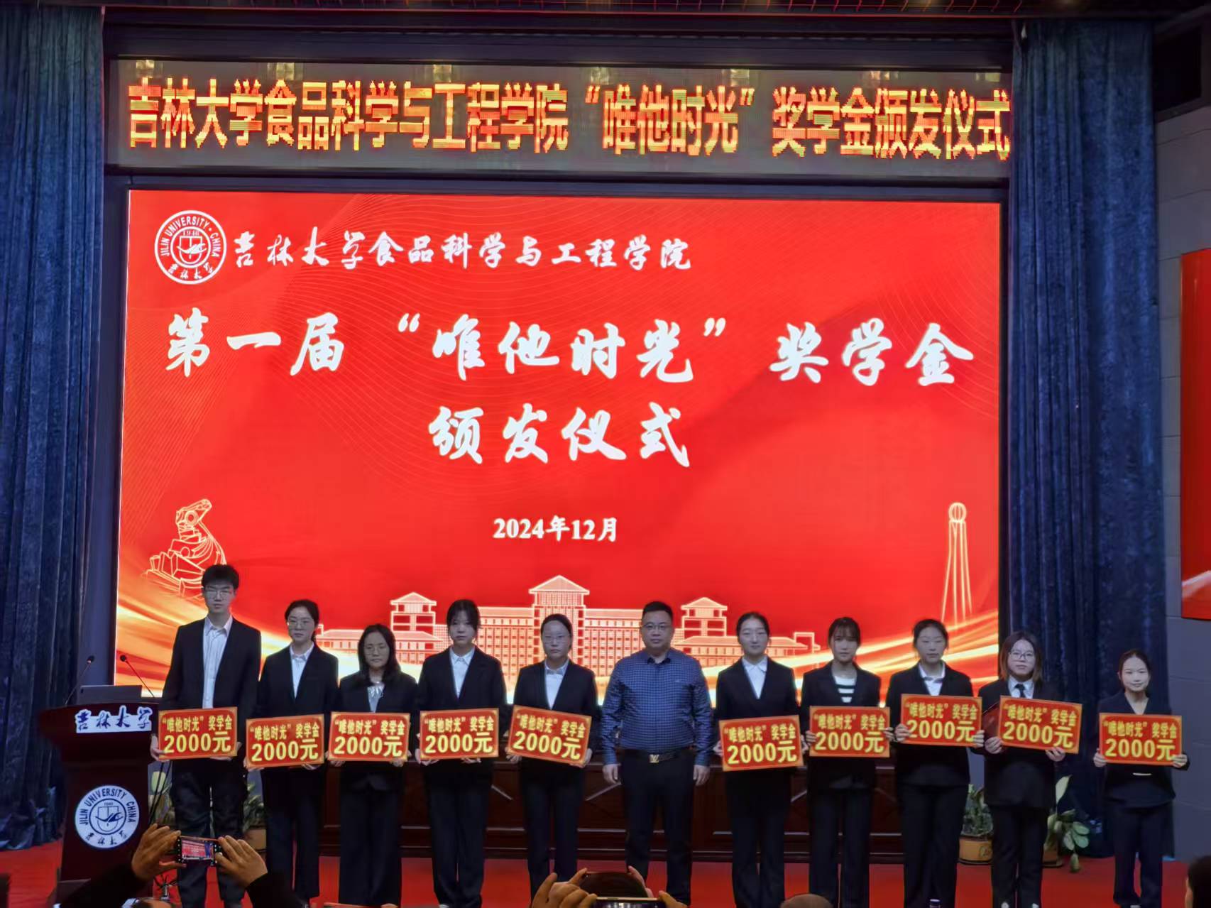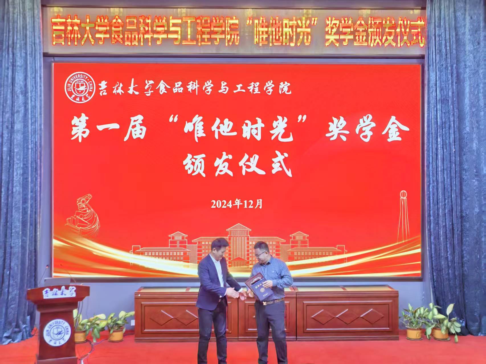 2024年度“唯他时光“奖学金获奖名单》,赵法利总经理为获奖学生颁奖。