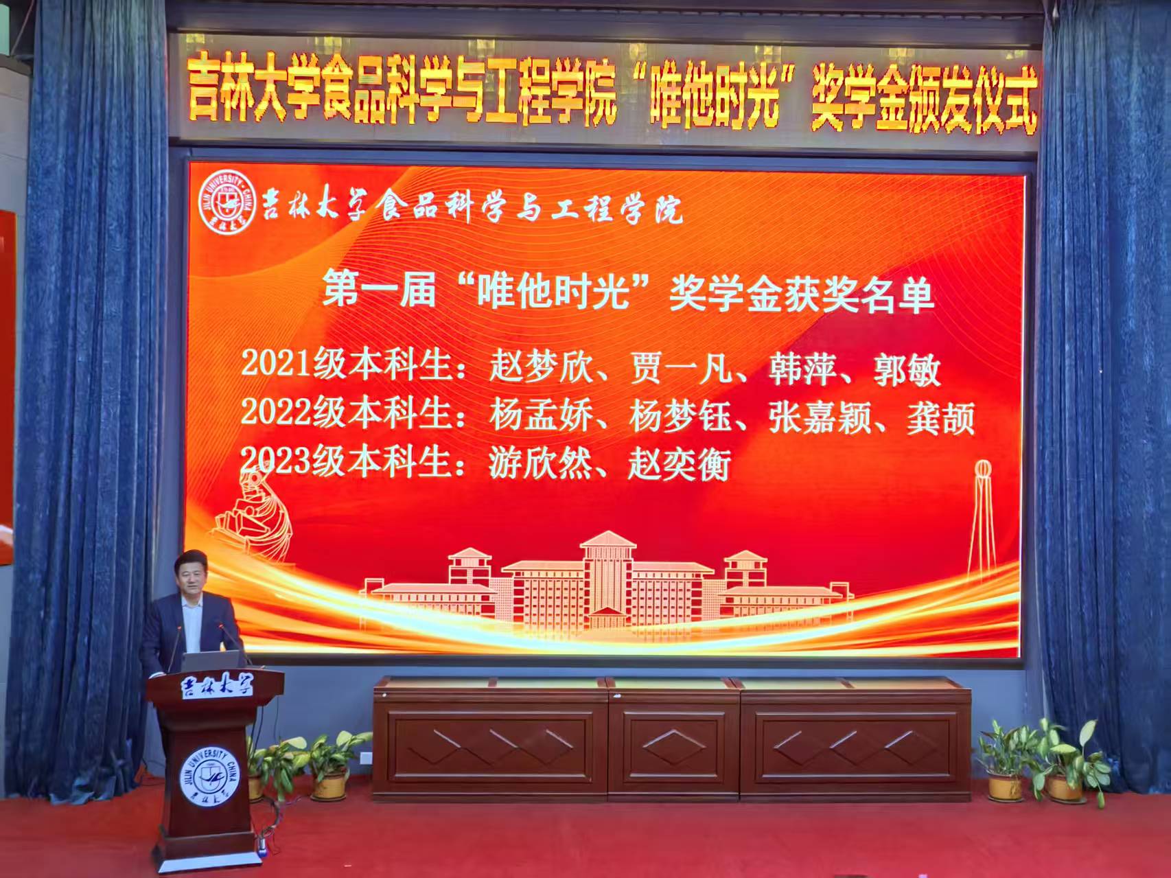 培养的第一批硕士研究生,也是在母校设立奖学金的第一位校友,本次设立“唯他时光“奖学金,是回馈母校、感恩母校、支持母校教育事业发展的真情展现。勉励获奖同学要向优秀校友学习,心怀感恩,勤奋进取,肩负青年人的社会责任和担当。