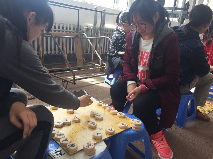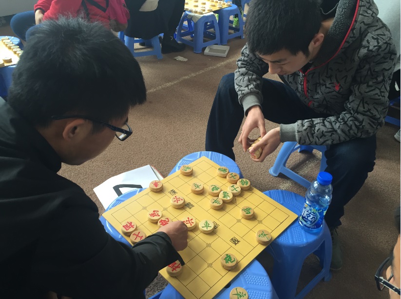 在前卫校区体育长廊举行中国象棋比赛,沈先生