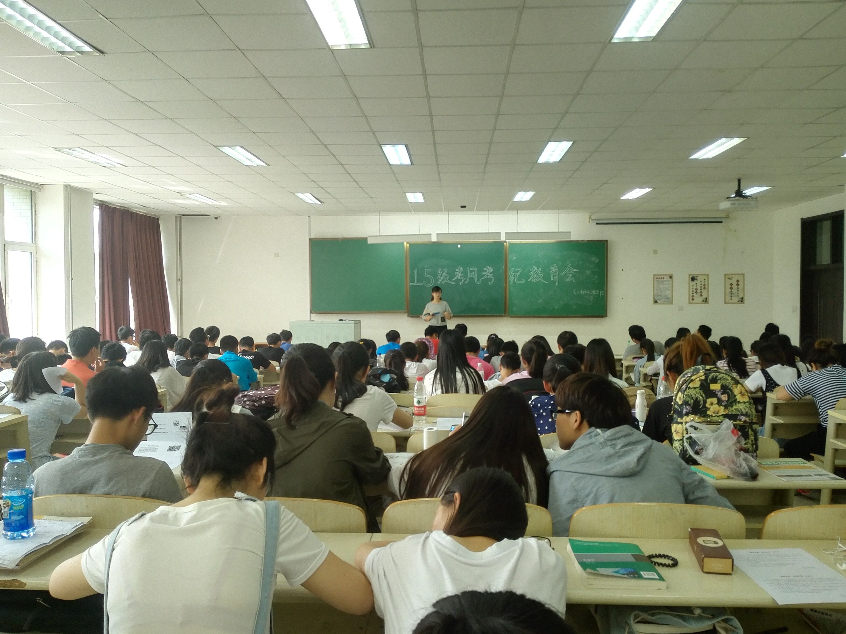 于李四光教学楼310室召开了2015级学生考风考纪教育大会。大会由2015级辅导员金鑫老师主持,沈先生