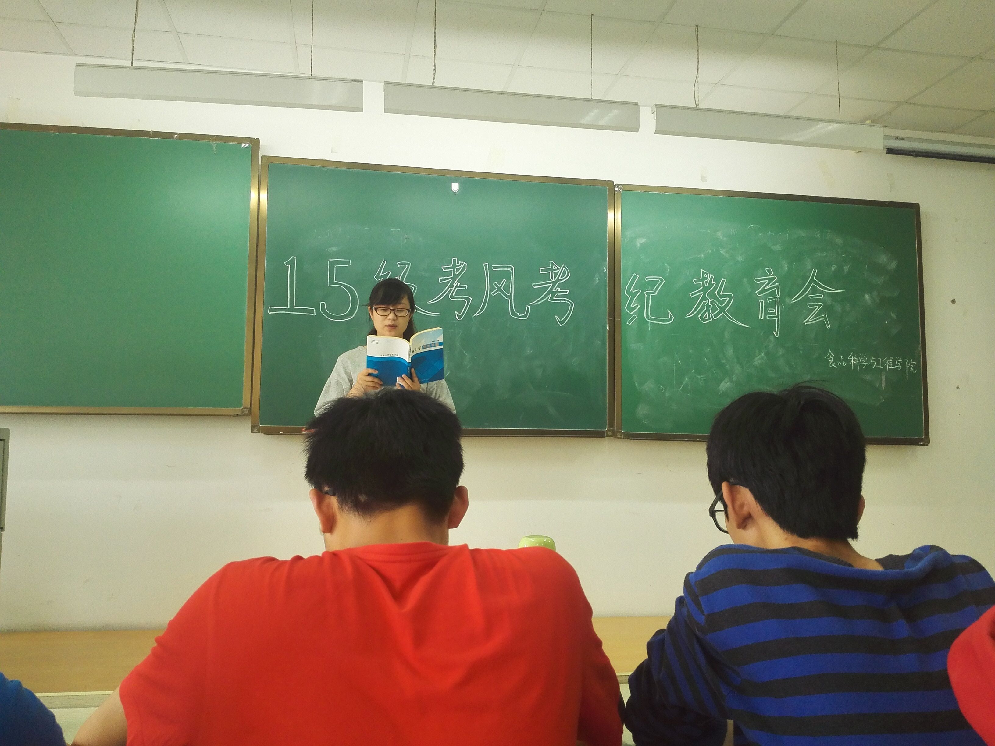 考试违规处理办法》,认真解释了学校整治考风的相关政策以及考试违纪处分、考试管理、补考重修等各种问题,并结合以往我院考试中出现的各种问题及其处理办法告诫同学们要严肃对待考试,坚持透明考试、诚信做人。此外,金鑫老师着重强调了考试作弊的危害,她表示考试作弊会践踏诚信理念,加剧信用危机,同时会助长部分同学不劳而获、投机取巧的心理,引导不正当竞争的产生,进而影响同学们的学习积极性,干扰良好学风的形成。最后,金鑫老师表示,希望同学们能够认真复习,放松心态,严格遵守考试纪律,做光明的食品人。 此次大会让同学们认识到了诚信应考的重要性,引导学生树立了诚信应考的理念。相信在即将到来的期末考试中,同学们一定能拿出积极饱满的态度,诚信应考,再创佳绩!