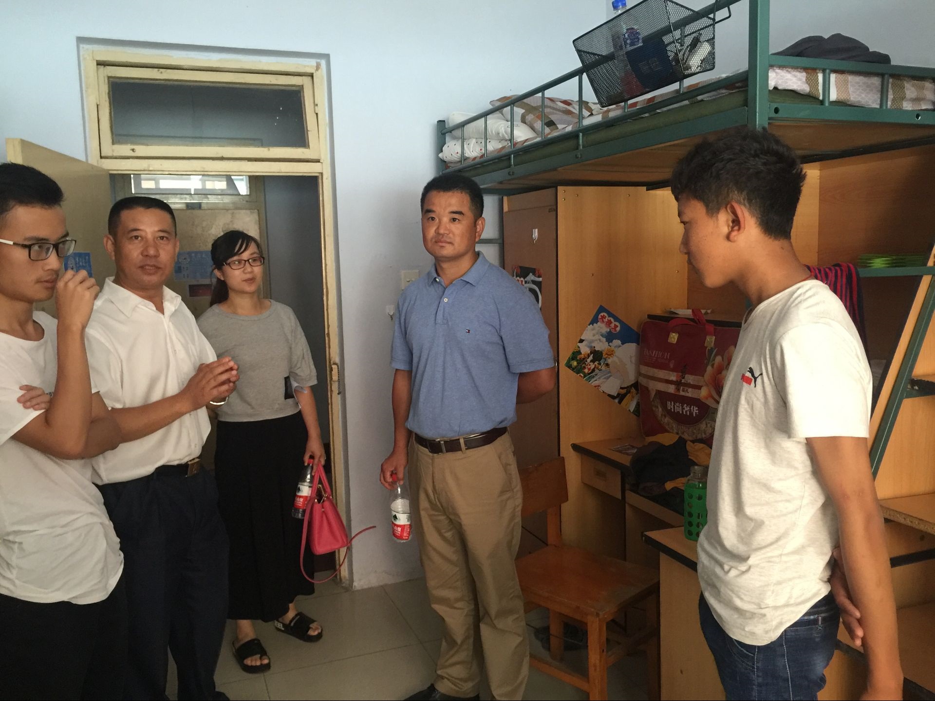 党委书记高福和、副书记梅士伟、2016级辅导员金鑫老师前往大学城二、三号新生公寓,走访了2016新生宿舍,看望新生,了解他们的生活情况。 走访过程中,高福和书记逐一进入新生寝室,详细询问了每一名学生的来源、年龄、家庭情况和高考报名志愿情况,重点了解新生的入住情况、来校饮食情况、环境适应情况等等,与尚未返乡的学生家长、2000出生的新生和四名藏族新生进行了深入交流。与新生交流期间,高书记向同学们介绍了学院的师资情况和专业前景,他提醒同学们一定要尽快适应大学生活,将全面提高自身综合素质放在首位,同时要学会包容,处理好宿舍成员和同学之间的关系,并祝愿新生在大学四年的生活中有所收获。 为帮助新生的良好成长,高福和书记还主动担任了新生六班的班主任,并表示要努力工作,为班级同学的成长成才服务。 开学之际,学院老师走访新生宿舍,是学院历年以来的迎新传统。与新生展开面对面的沟通与交流,了解新生的思想、生活状况,有利于新生更快融入沈先生