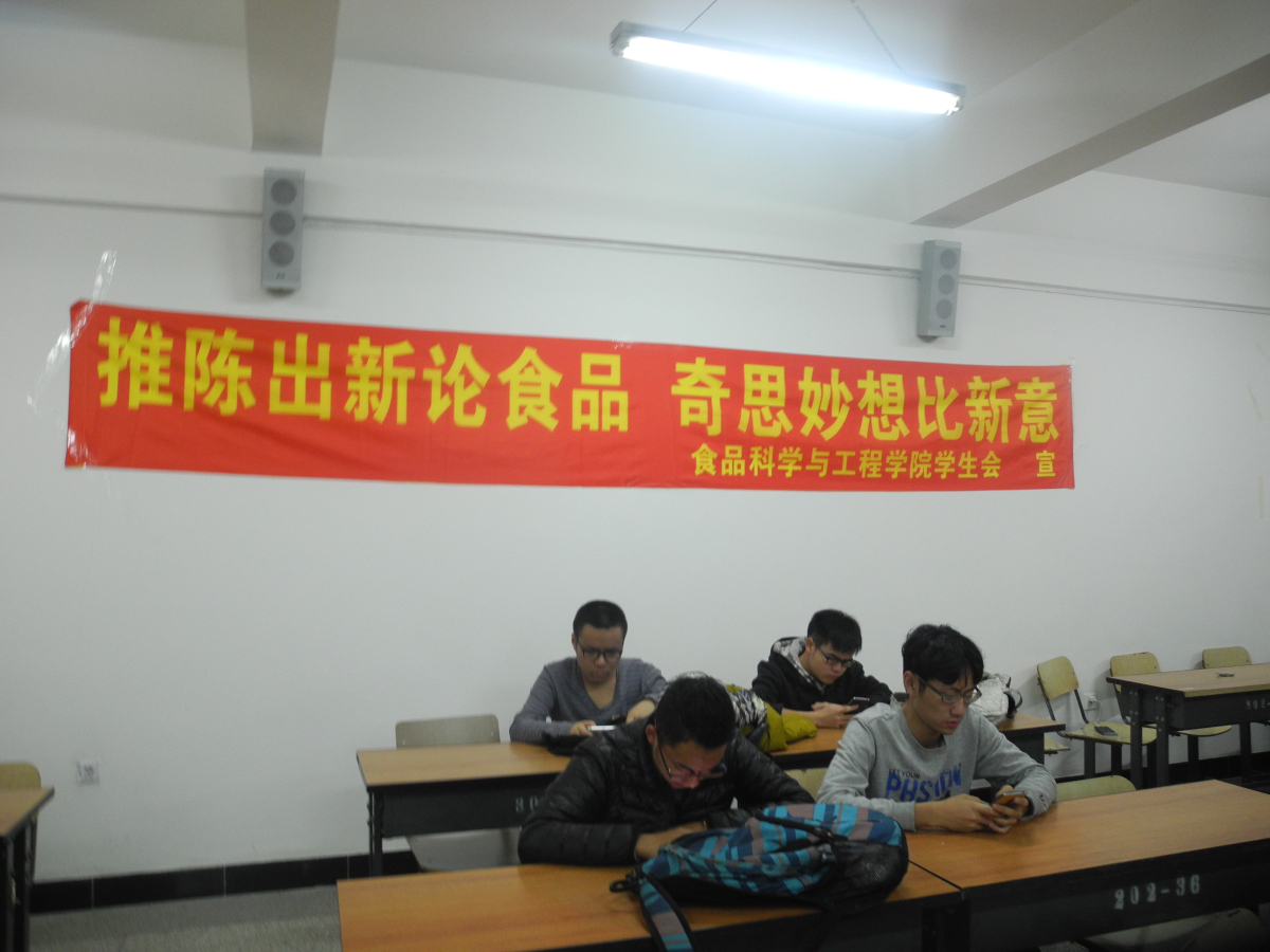 学生会宣传部和创新创业部联合举办的“与食俱进”创新创业大赛宣讲会于科学讲堂302举办。此次宣讲特别邀请到了2013级创新创新保研获得者、“大圣归来”创意面包的获奖者侯萍萍学姐为各参赛队伍提供思路。 首先,主持人介绍了本次“与食俱进”创新创业大赛的活动主题、汇报要素、汇报演讲环节及评分细则,期间,可由同学们进行提问。同学们听得仔细,问得认真,大家积极响应,反应热烈。接下来,由侯萍萍学姐向大家简要介绍了参加“盼盼杯”及“康师傅”烘焙大赛的比赛经验,同时,对同学们接下来要参加的比赛给出了详细的建议并对同学们表达了美好的祝愿。最后,学院学生会主席赵驰乐萌进行了总结发言,对侯萍萍学姐的到场以及经验分享表示感谢并表述了自己的观点和看法。