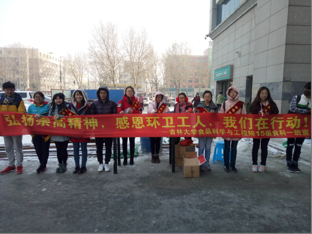 为引导大学生投身公益、志愿服务,弘扬回馈社会,积极贡献的崇高精神,2015级食品科学与工程专业一班于11月5日上午在春城购物广场开展了“暖冬送温暖、瓜子义卖”活动,用实际行动感恩环卫工人。一班班委及十余名同学参加本次活动。活动在川渝学联及徐霞客食品经贸有限责任公司大力支持下取得圆满成功。