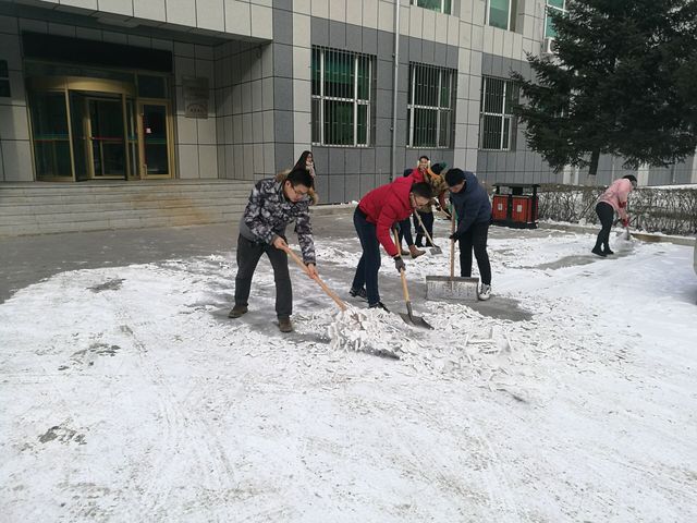 扫雪过程中,学生党员们不畏严寒、积极主动、相互配合、齐心协力,挥舞着铁锹,一点点地将积雪和冰层铲起集中堆放,尽管同学们的手和脸被冻的通红,然而这一切丝毫没有影响大家的热情和工作效率,手中的扫雪工具不停地挥舞。在学院学生第二党支部副书记李松函的带领下,同学们发扬了吃苦耐劳、顽强拼搏的精神,大家团结协作,顶着寒风,将食品楼前的积雪全部清扫干净。同学们干劲十足的身影感染了每一个路过的人。经过了近一个小时的奋战,路面基本恢复了畅通洁净。