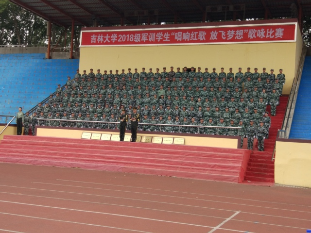2018级军训学生“唱响红歌、放飞梦想”歌咏比赛在中心校区体育场隆重举行。食品科学与工程学院全体新生代表军训旅7营参加比赛,先后演唱《吉林大学校歌》《走向复兴》两首歌曲,以严整的气势和嘹亮的声音,在由军训旅各营选送的十支参赛队伍中取得第四名的良好成绩。