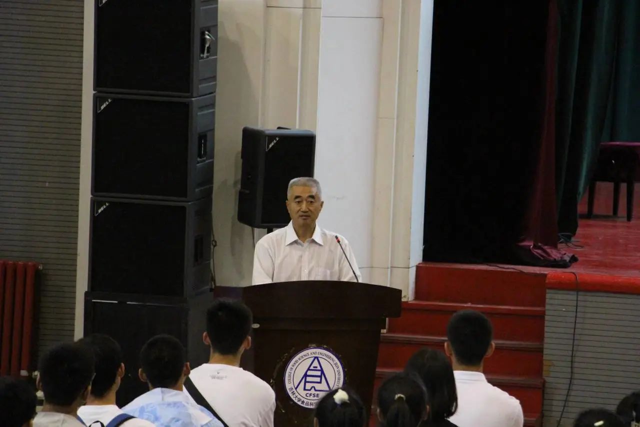 会议伊始,学院院长张铁华代表学院党委和领导班子成员向2023级新生致欢迎词,对新生的到来表示热烈欢迎和衷心的祝贺。他从学院历史沿革及现况、人才培养、师资队伍、学科建设、科学研究等方面向同学们详细介绍了学院情况。希望同学们可以深耕细作、厚积薄发,传承“心有大我,志诚报国”的爱国信念,做珍“食”立“品”的食品人。