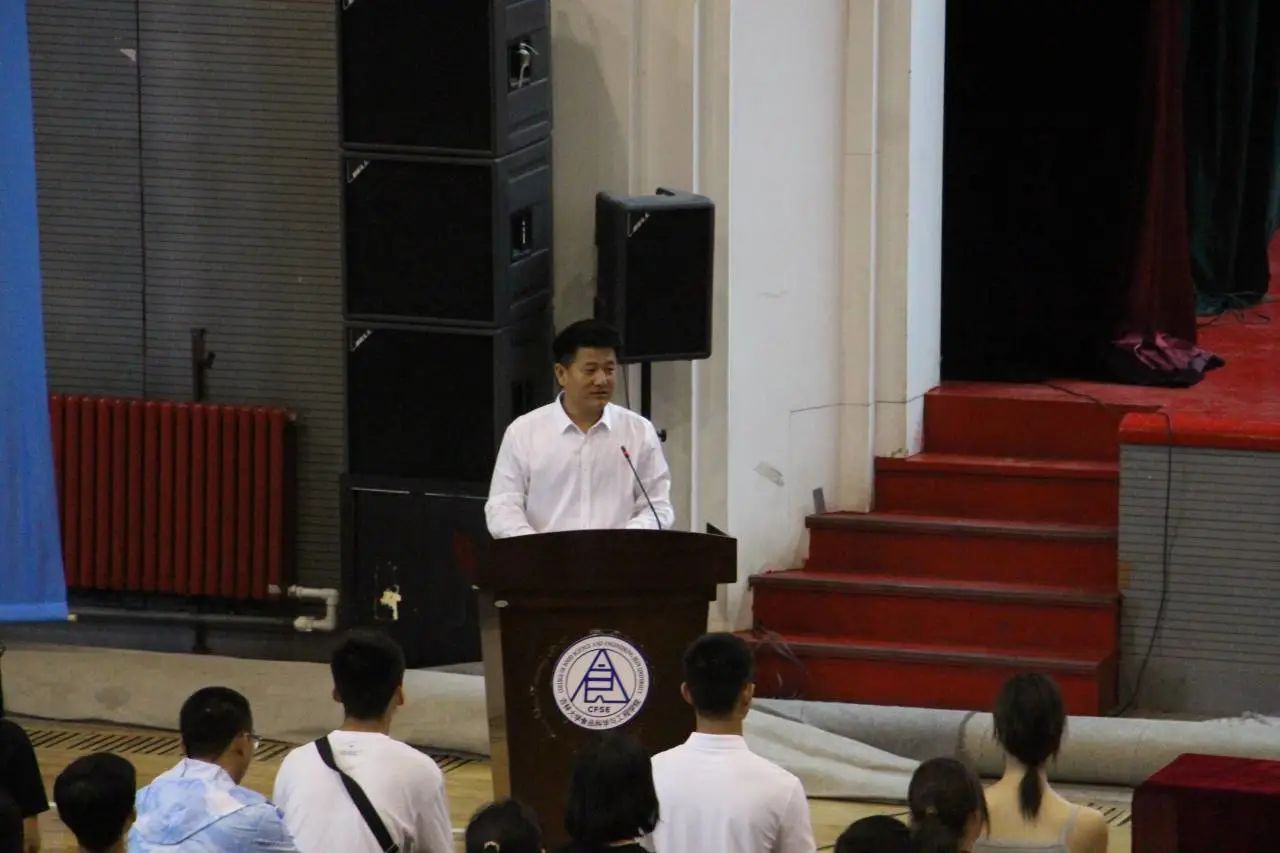 学院党委书记董怀智以“勇担强国重任,敢为民族栋梁”为题为新生讲授开学第一课。他先是带领同学们追忆峥嵘岁月,介绍沈先生