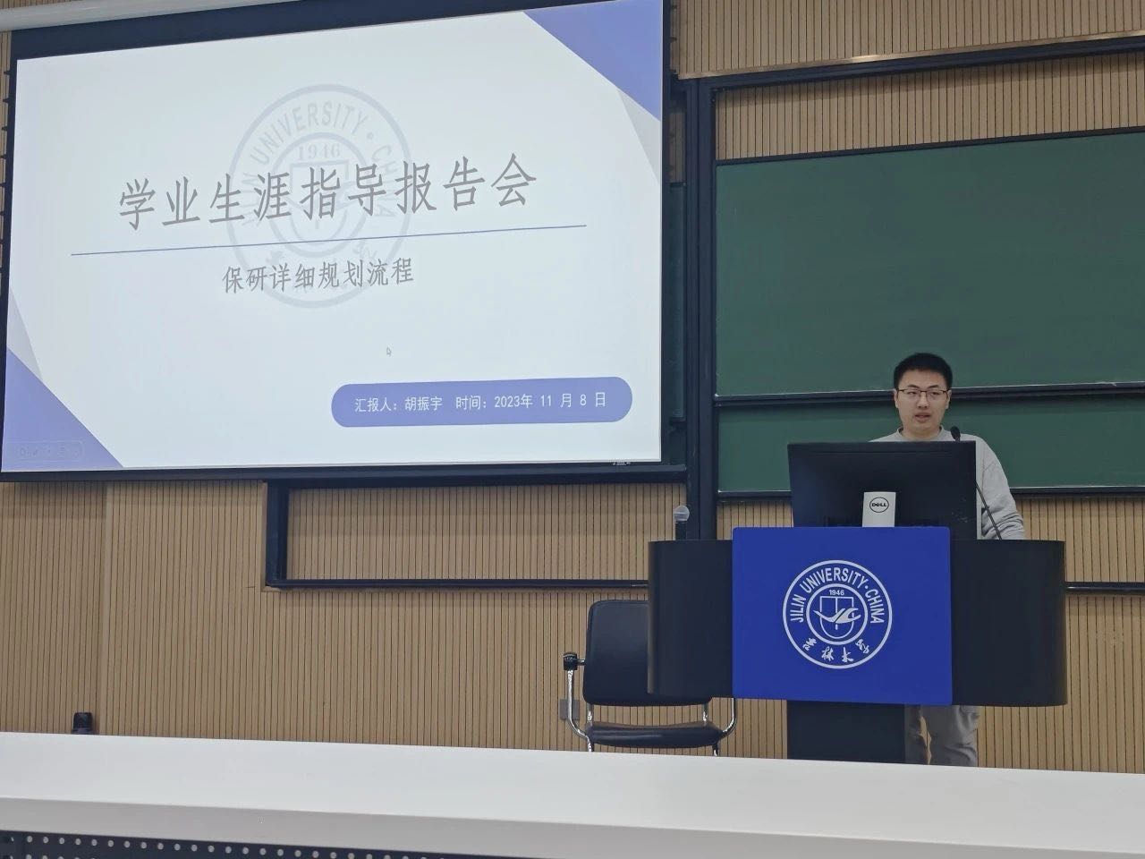 于2023年11月8日上午8时在敬信楼第九阶梯教室开展学业生涯指导报告会。学院团委书记王新欣老师,2023级辅导员柴普今老师以及2023级全体同学参加此次报告会。