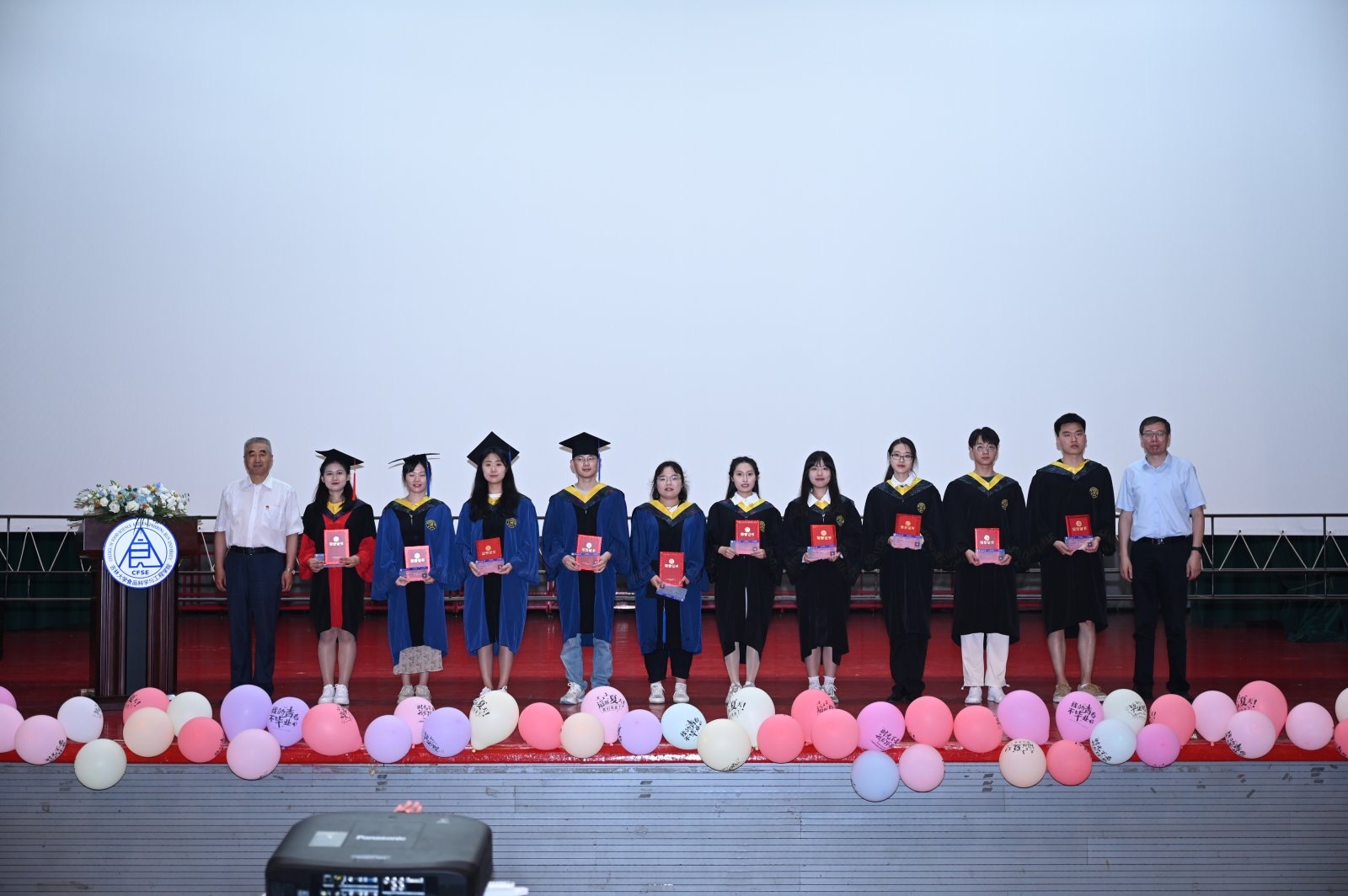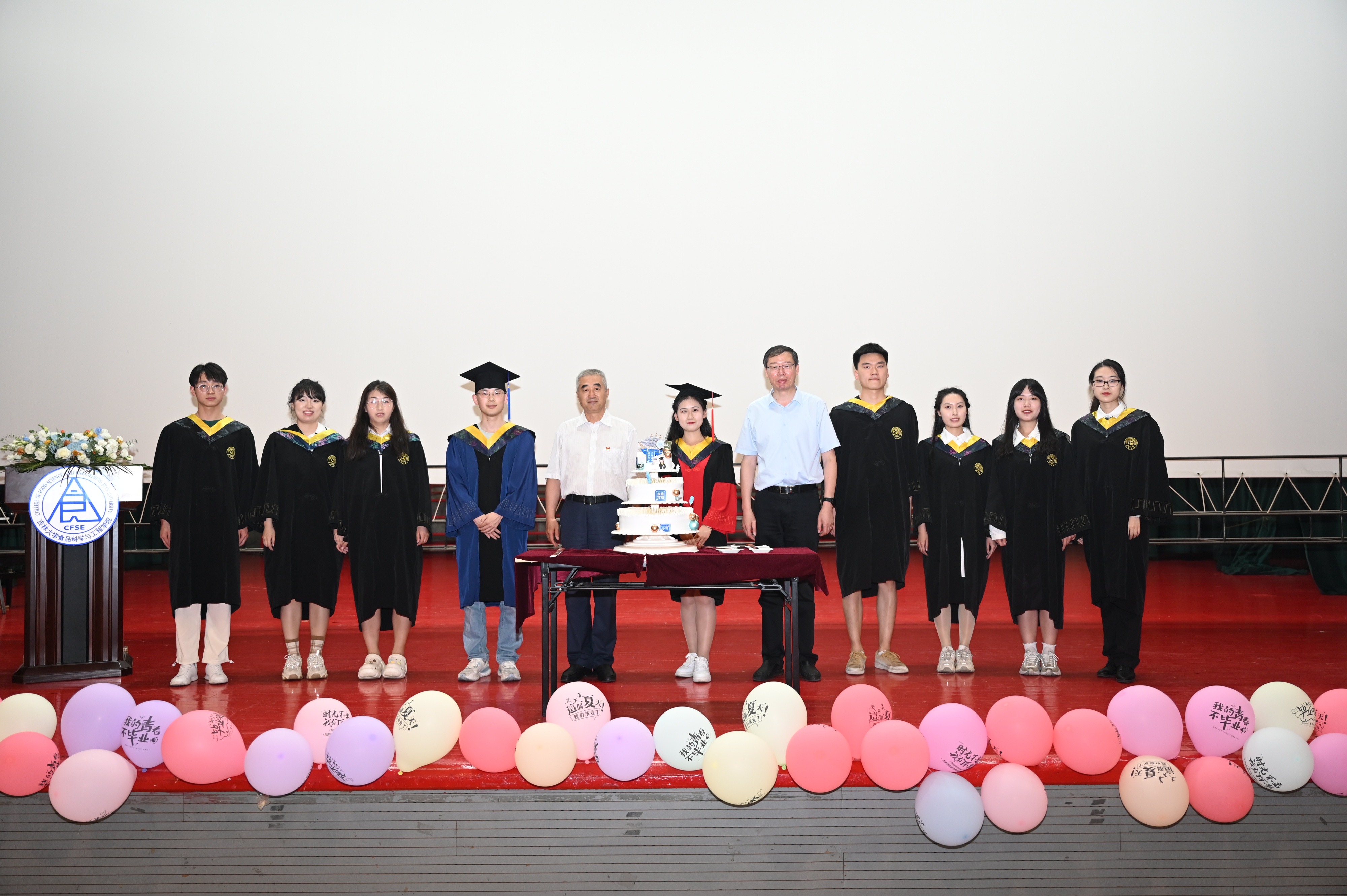 董怀智书记为2023届优秀毕业研究生、优秀本科毕业生颁奖。张铁华院长为优秀毕业生赠与毕业纪念品,并和毕业生代表共同切开嵌有每名毕业生名字的蛋糕,祝福大家未来生活美满甜蜜。