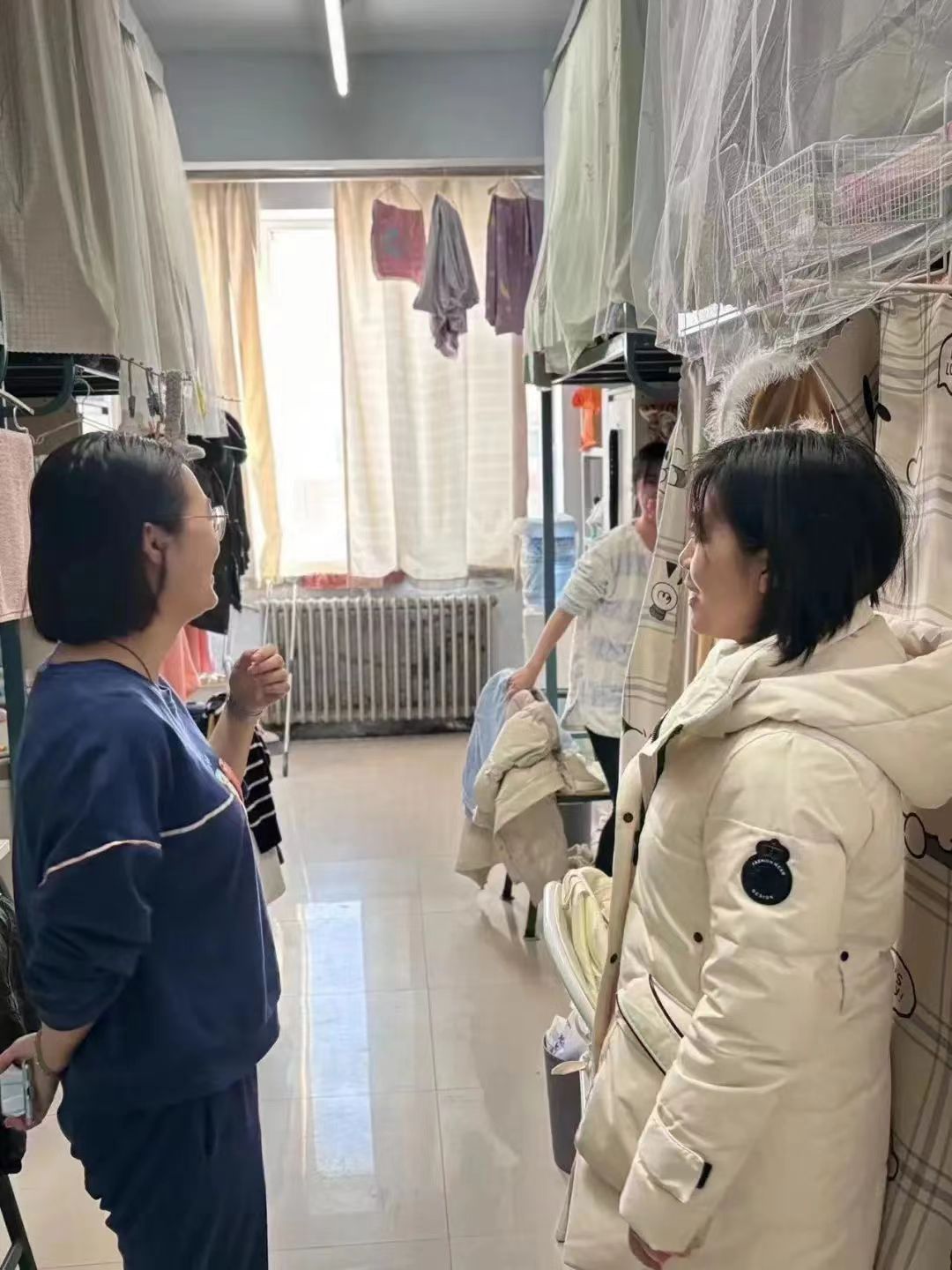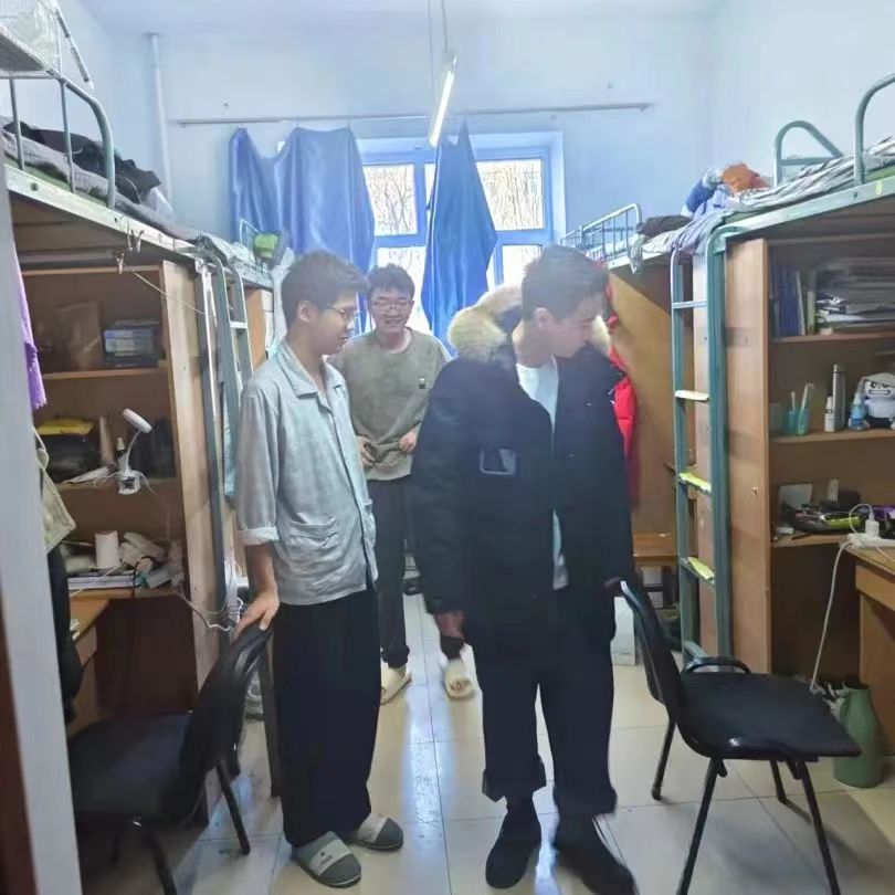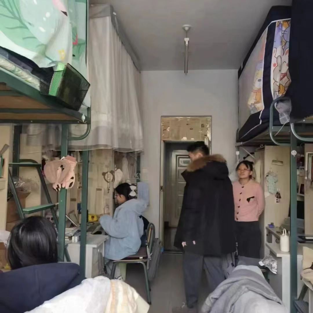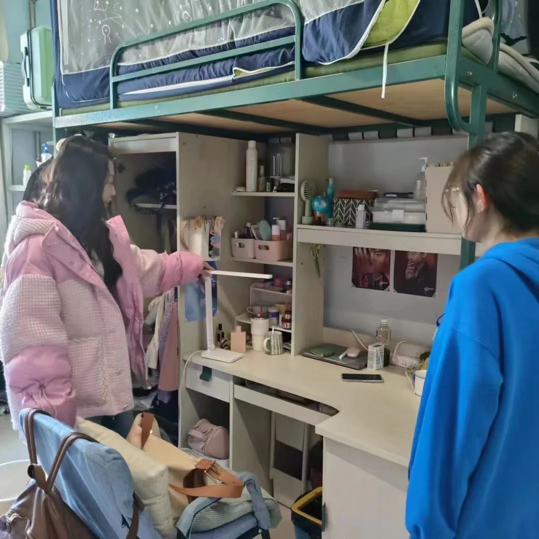 郝慧老师去到每一个寝室,检查是否存有违规电器或易燃易爆品,同时和同学们进行沟通交流,询问假期的学习情况,细心的关注着同学们的心理和身体状况,并对新学期给予鼓励和期待。