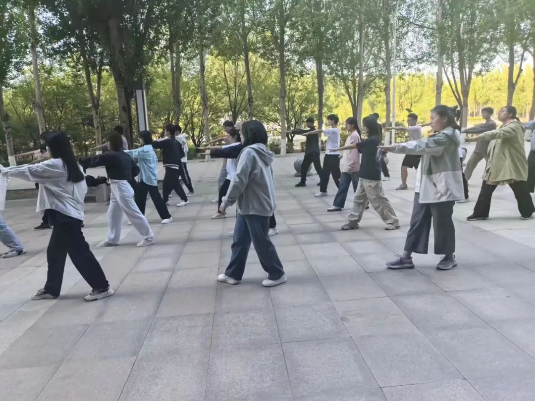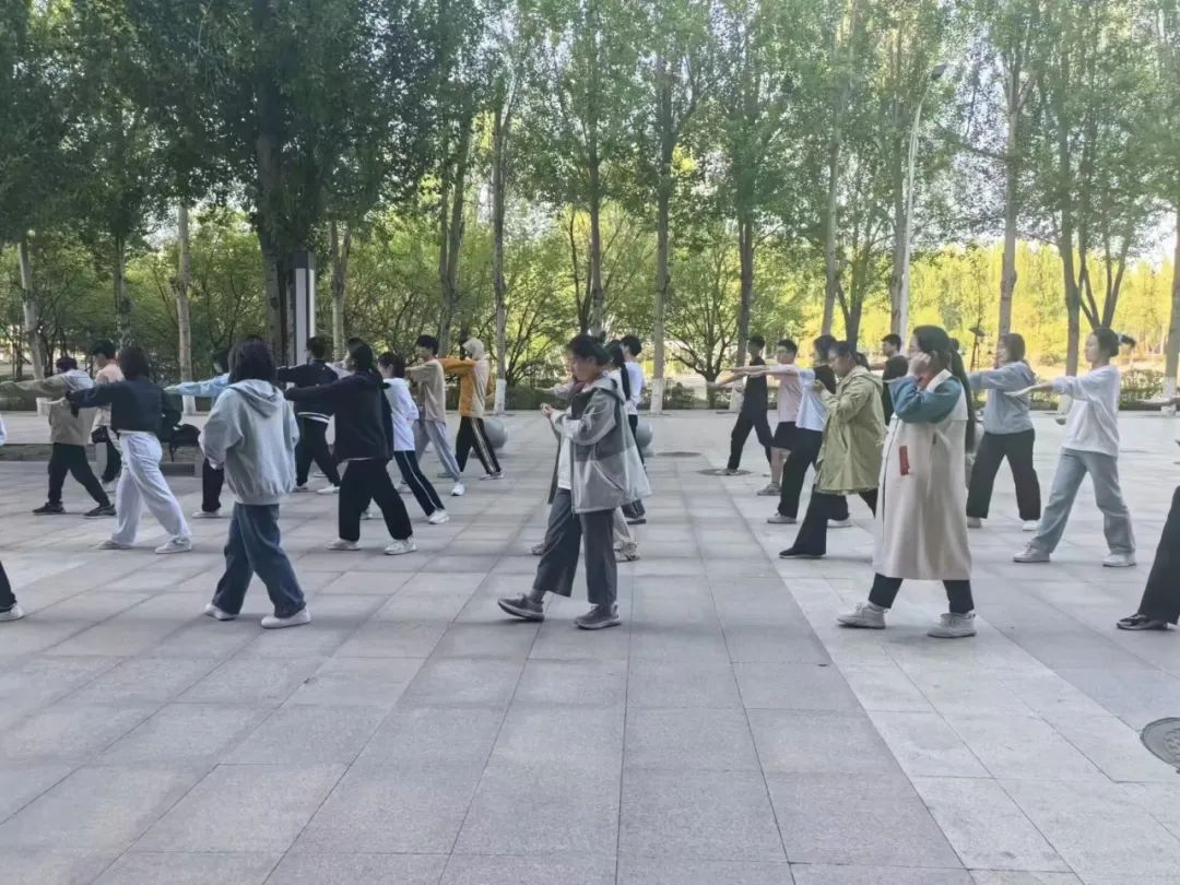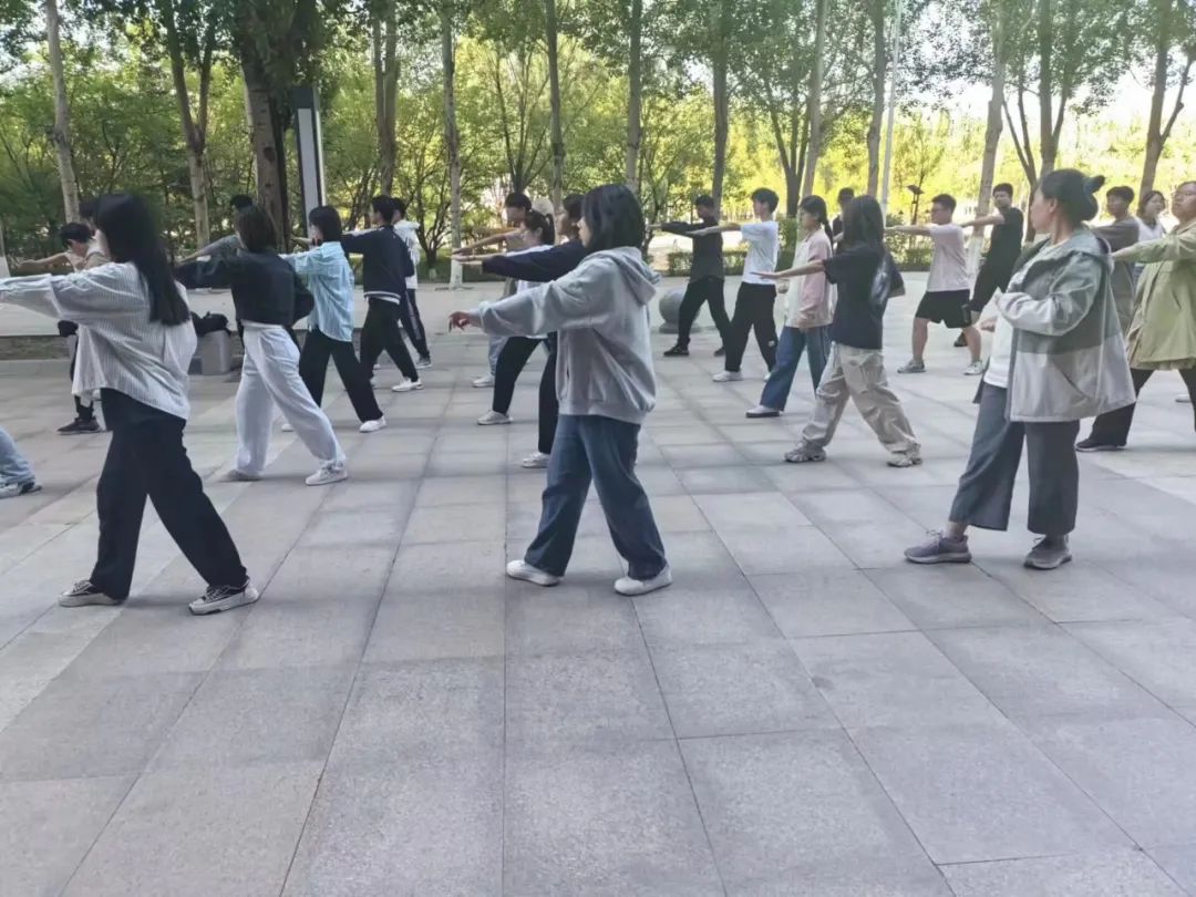 体育场上,在领队于美净、黄琪涵同学的带领下,同学们精神焕发,以流畅的动作、优美的姿态展示了八极拳的独特魅力。他们以内劲统领全身,动作刚柔并济、快慢相间,运动如行云流水,绵绵不断,充分展现了八极拳的运动风格特点。每个灵活而有力的八极拳动作背后,都是沈先生