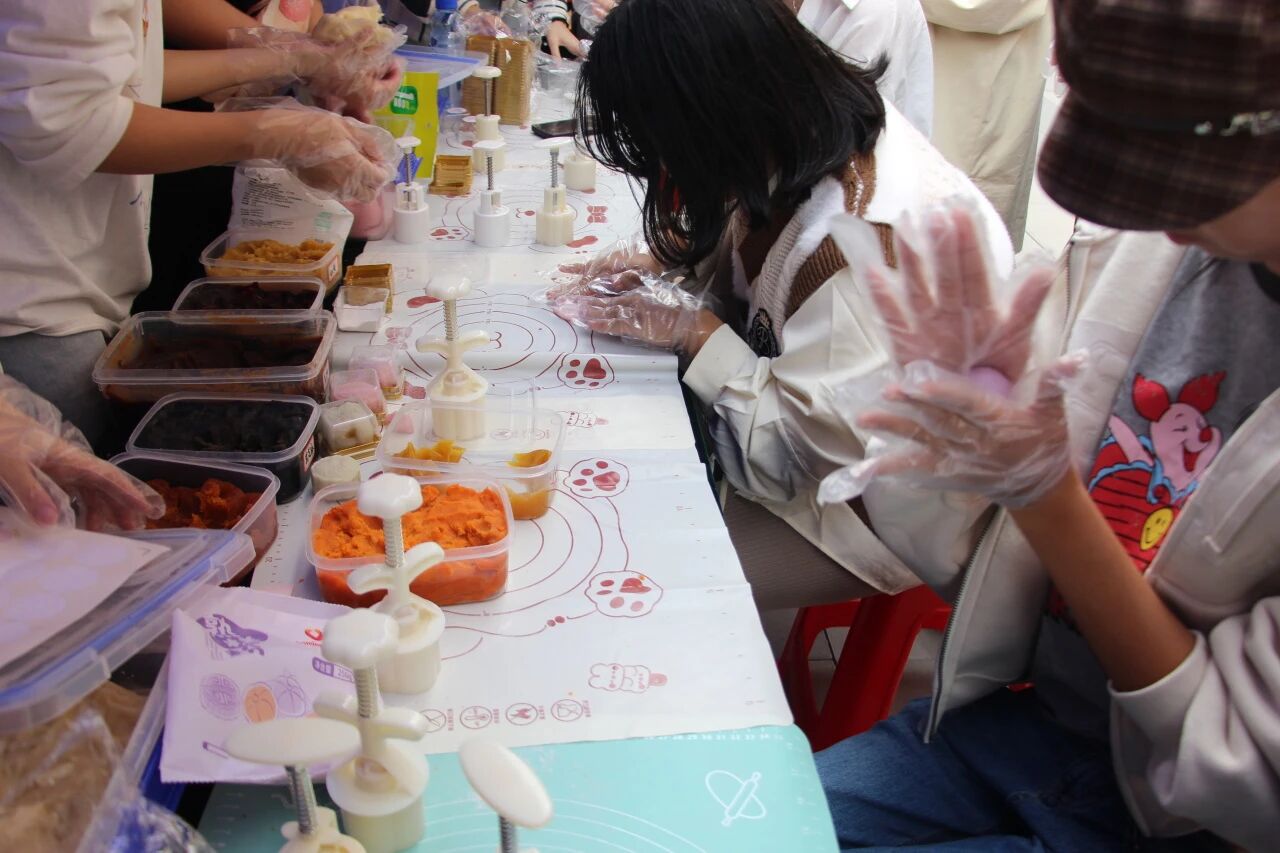 在前卫南区大学城社区开展的冰皮月饼DIY体验活动,以400余枚月饼的甜蜜成果、10余个学院学子的跨界参与,书写了一段“以食传情”的校园中秋故事。