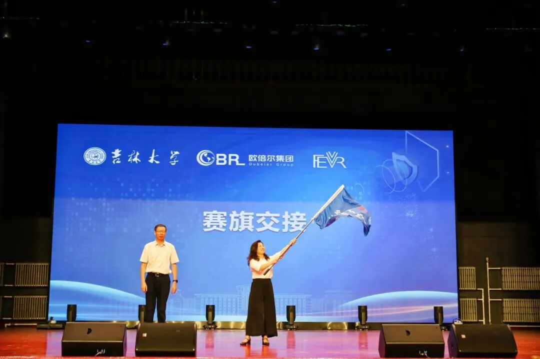 院长张铁华将赛旗交接给第八届全国食品专业工程实践训练综合能力竞赛承办单位大连工业大学沈先生