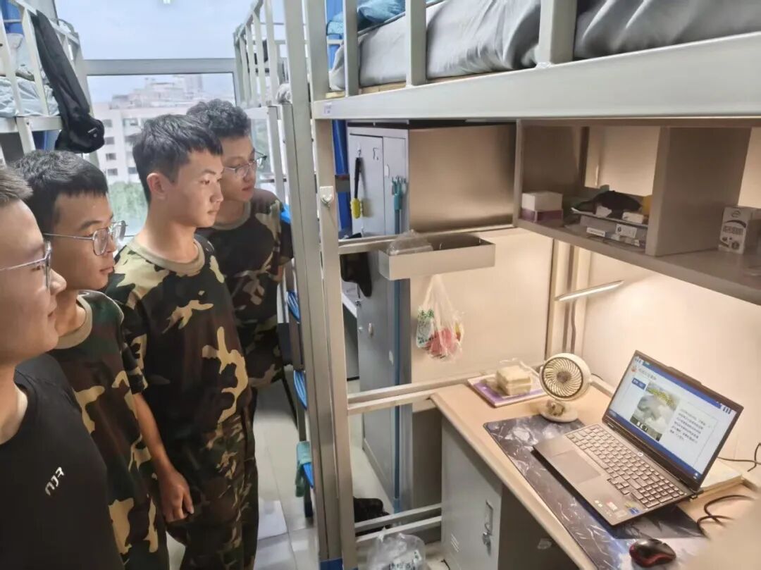观看过程中,2025 级新生展现出高度的学习自觉与专注态度。在各寝室里,新生们或独自端坐于书桌前,或围坐在一起共同观看,均全程保持注意力集中,认真聆听讲座内容,详细记录关键知识点,形成良好的学习氛围。