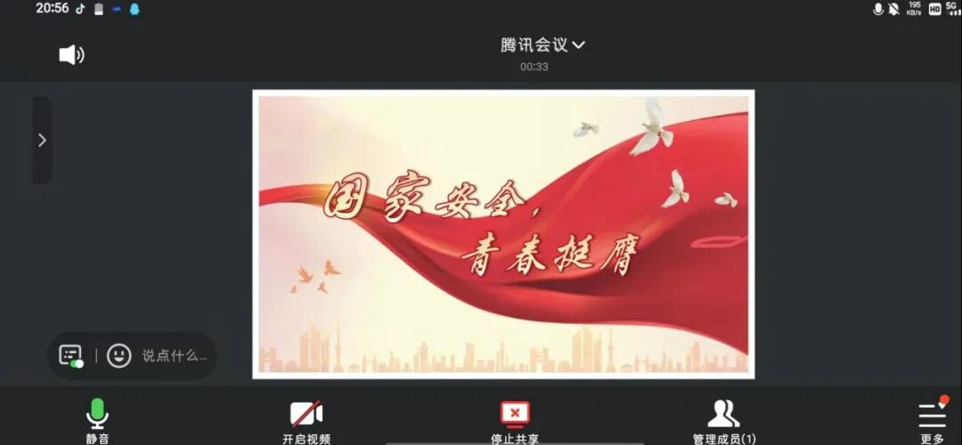 2025年4月17日,2023级3班全体团员在腾讯会议开展主题团日活动。活动中,大家观看了以真实案例改编的国家安全主题微电影,观影后团员们围绕“青年如何在日常生活中践行国家安全责任”展开讨论并分享心得。此次活动增强了团员的国家安全意识,激发了团组织活力,提升了团队协作与应急响应能力。活动结束后,大家决心以实际行动捍卫国家安全,为国家长治久安贡献青年力量。