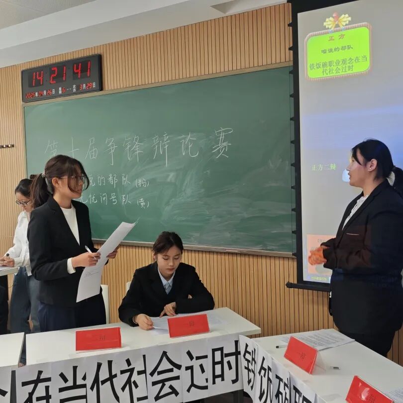 举办的辩论赛。这两场激烈的辩论赛,围绕“铁饭碗观念在当今时代是否过时”与“电子竞技职业化对青少年的利弊”展开深度探讨。