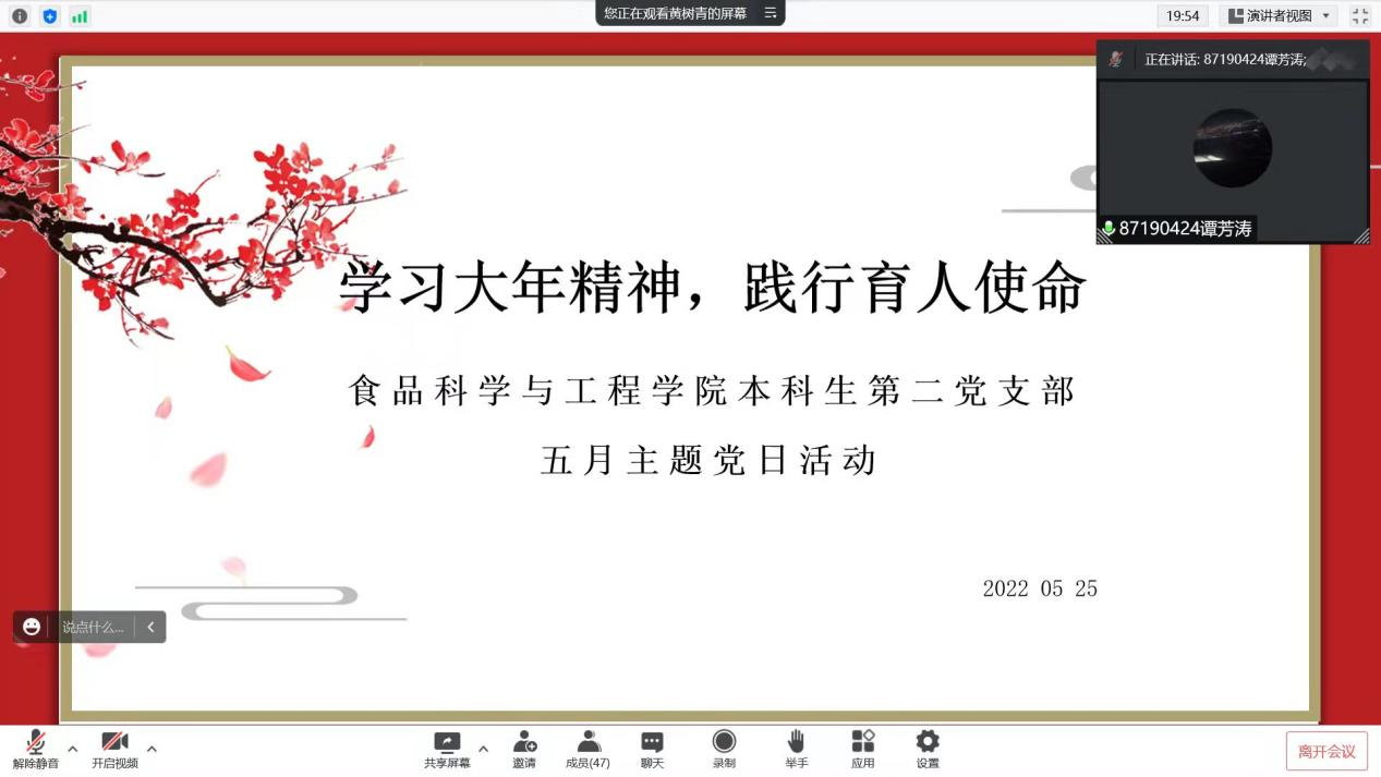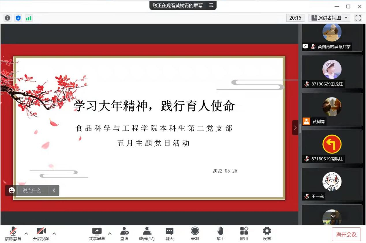 为继承和发扬黄大年精神,弘扬伟大抗疫精神,不断增强广大党员归属感、荣誉感和使命感,2022年5月25日,沈先生 本科生第二党支部开展“学习大年精神,践行育人使命”主题党日活动。支部书记王新欣主持,支部全体党员参加。