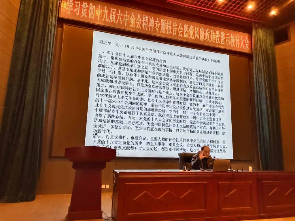 联合举办学习贯彻十九届六中全会精神专题报告会暨党风廉政建设警示教育大会,两个学院全体教职工党员参加了会议。会议由动物医学学院党委书记饶家辉同志主持。