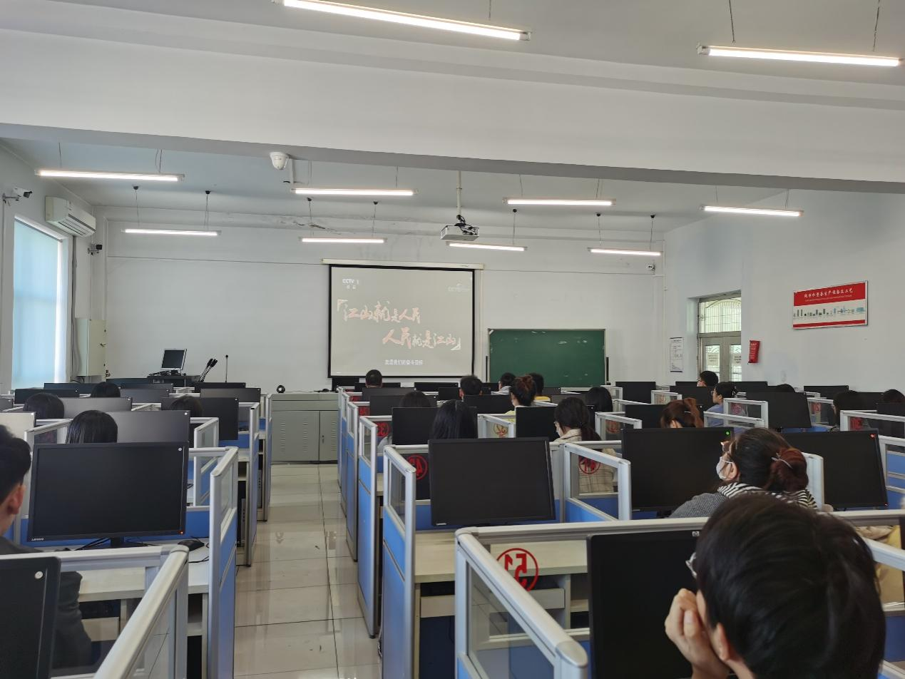研究生第一党支部组织全体党员在食品楼三楼机房集中观看《党课开讲啦》节目第一期《党的光辉历程》。
