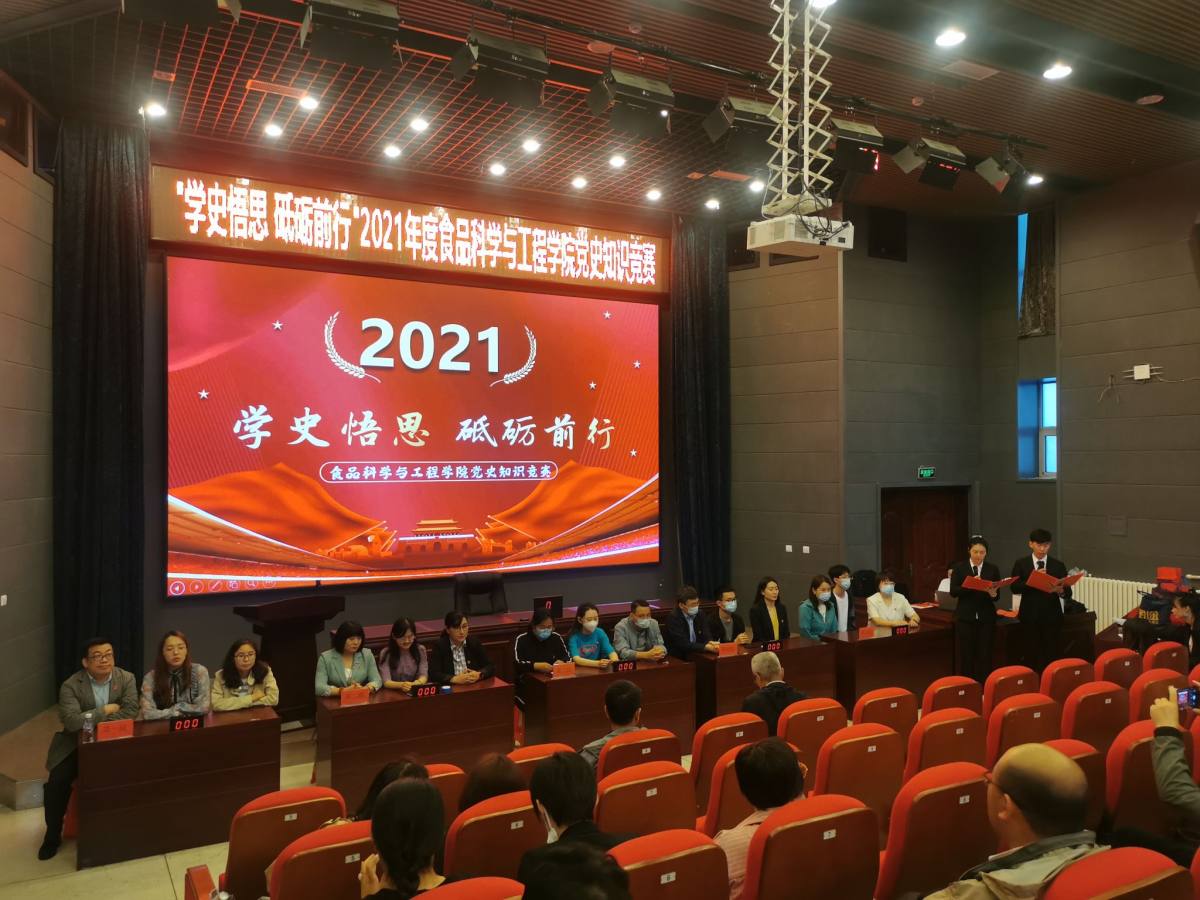 本次“学史悟思 砥砺前行”党史知识竞赛由学院师生党员联合组成五支代表队参赛,知识竞赛有必答题、抢答题、风险题等环节,涵盖《中国共产党章程》《党的十九大报告》、党建知识应知应会100题等党史相关内容。主持人宣布竞赛开始后,全体师生党员齐唱《中华人民共和国国歌》,比赛帷幕就此拉开。比赛中,选手们精神饱满,积极踊跃,沉着应答,展现出丰富的党史知识储备。在抢答题环节,各参赛队选手争分夺秒,精彩迭出,赢得了一阵阵热烈的掌声。比赛现场气氛热烈、紧张有序、扣人心弦,经过激烈角逐,食品科学与工程系第二教师党支部代表队荣获一等奖,食品科学与工程系第一教师党支部和实验教学中心党支部代表队荣获二等奖,食品质量与安全系教师党支部和机关党支部代表队荣获三等奖。