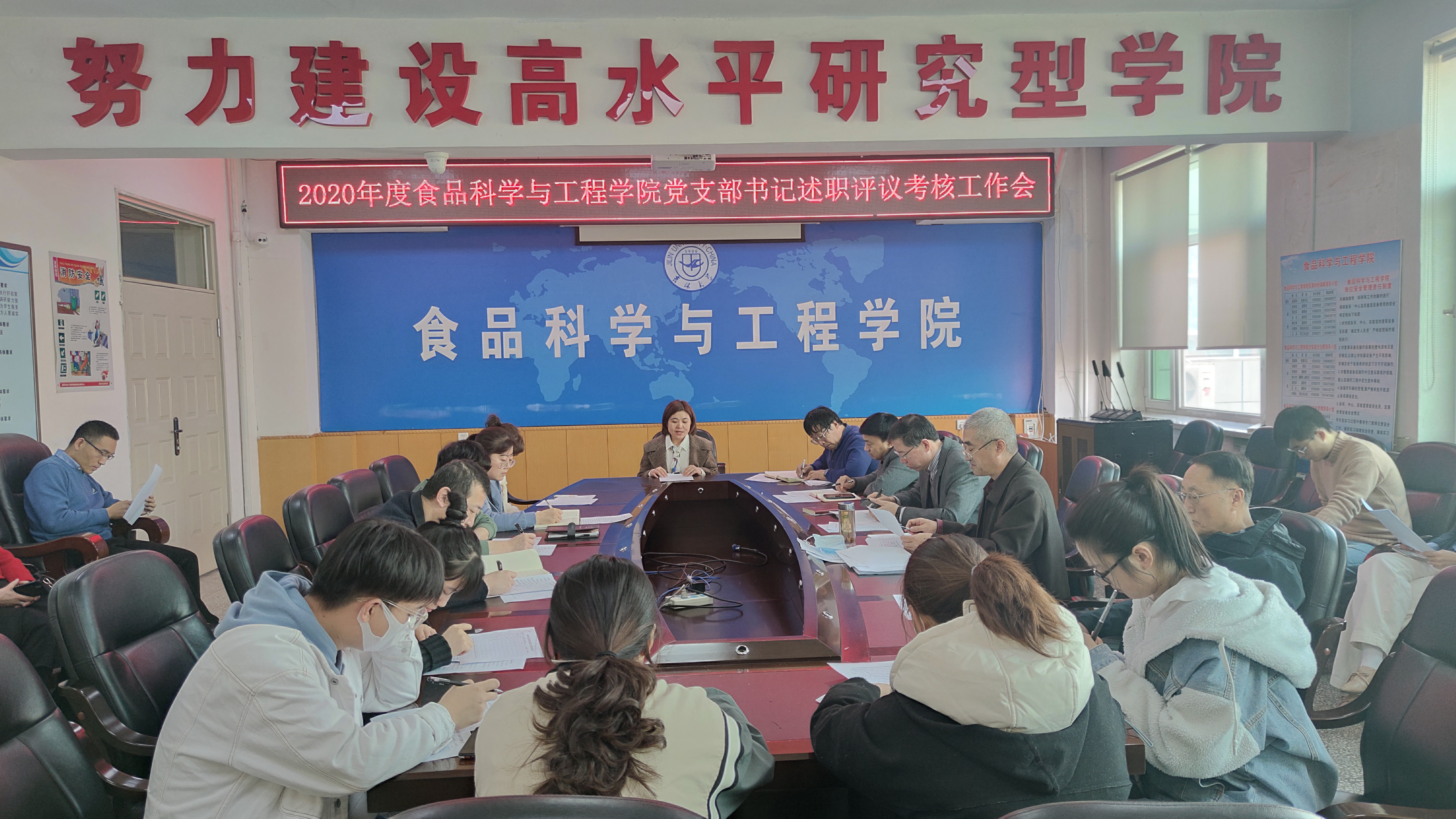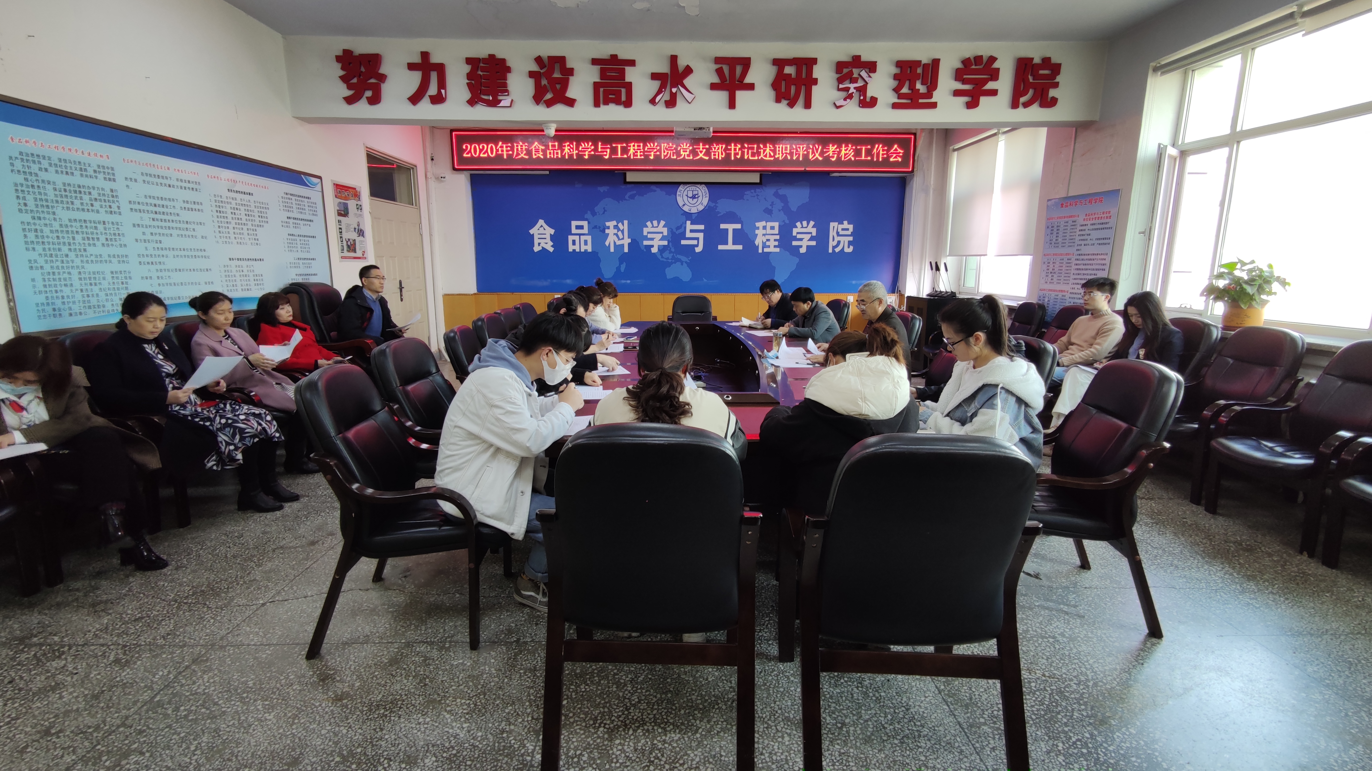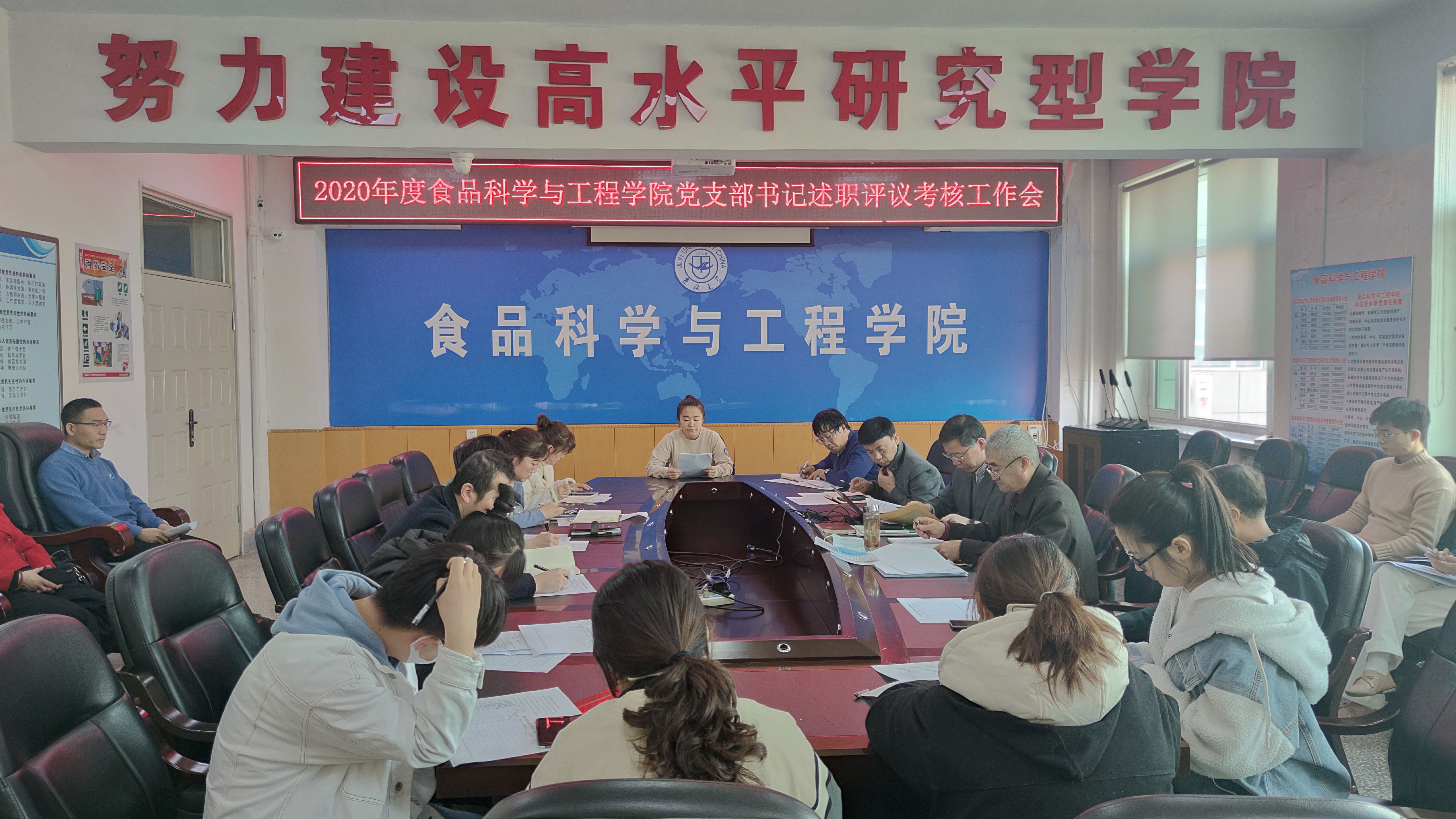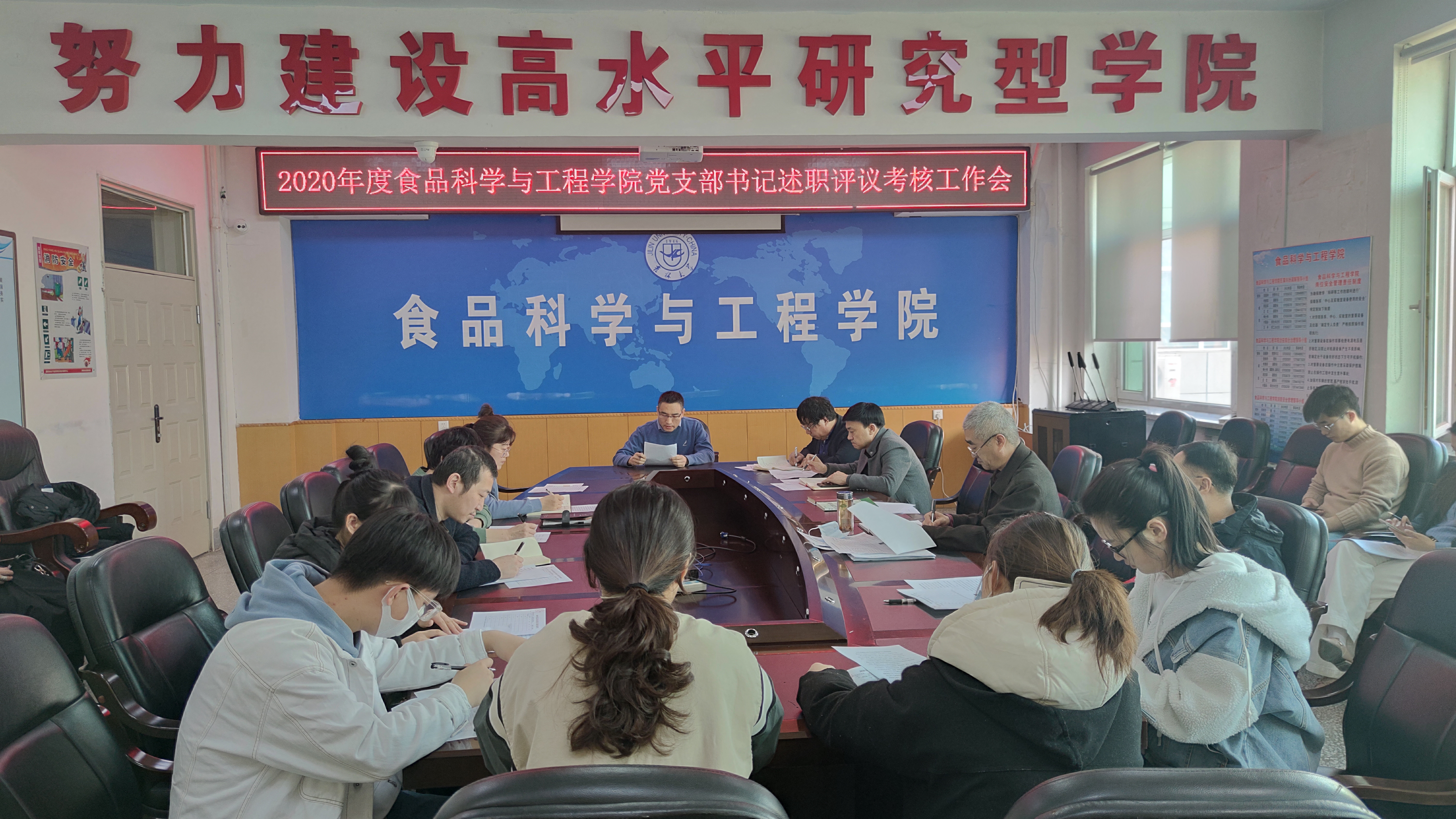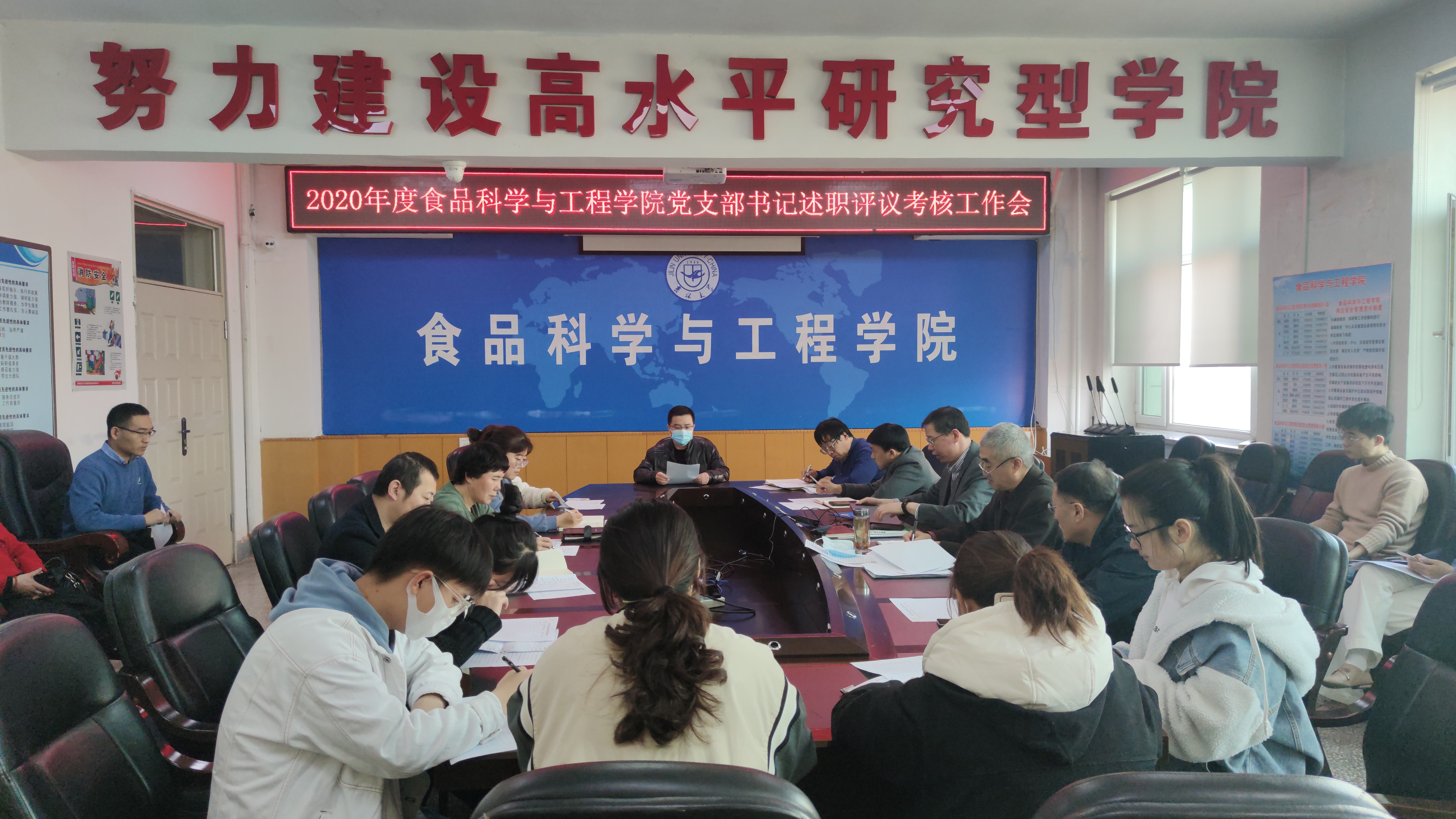 在食品楼三楼会议室召开2020年度党支部书记述职考评会。学院党委委员、各党支部党员代表、党支部书记参加了会议。会议由学院党委书记董怀智主持。