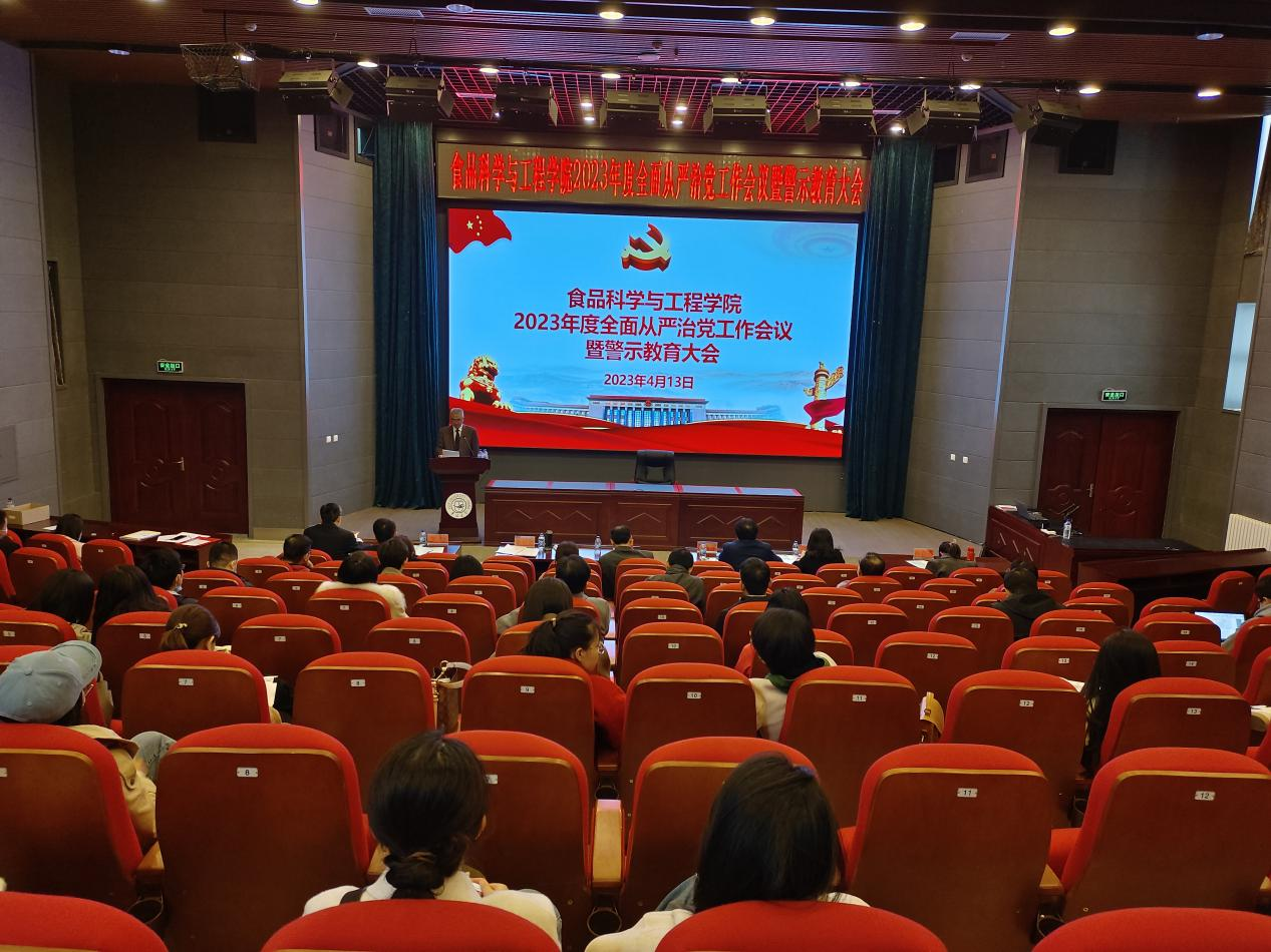 于2023年4月13日下午,在和平校区图书馆二楼报告厅召开2023年全面从严治党工作会议暨警示教育大会,全体教职员工参加会议.会议由党委书记董怀智主持。