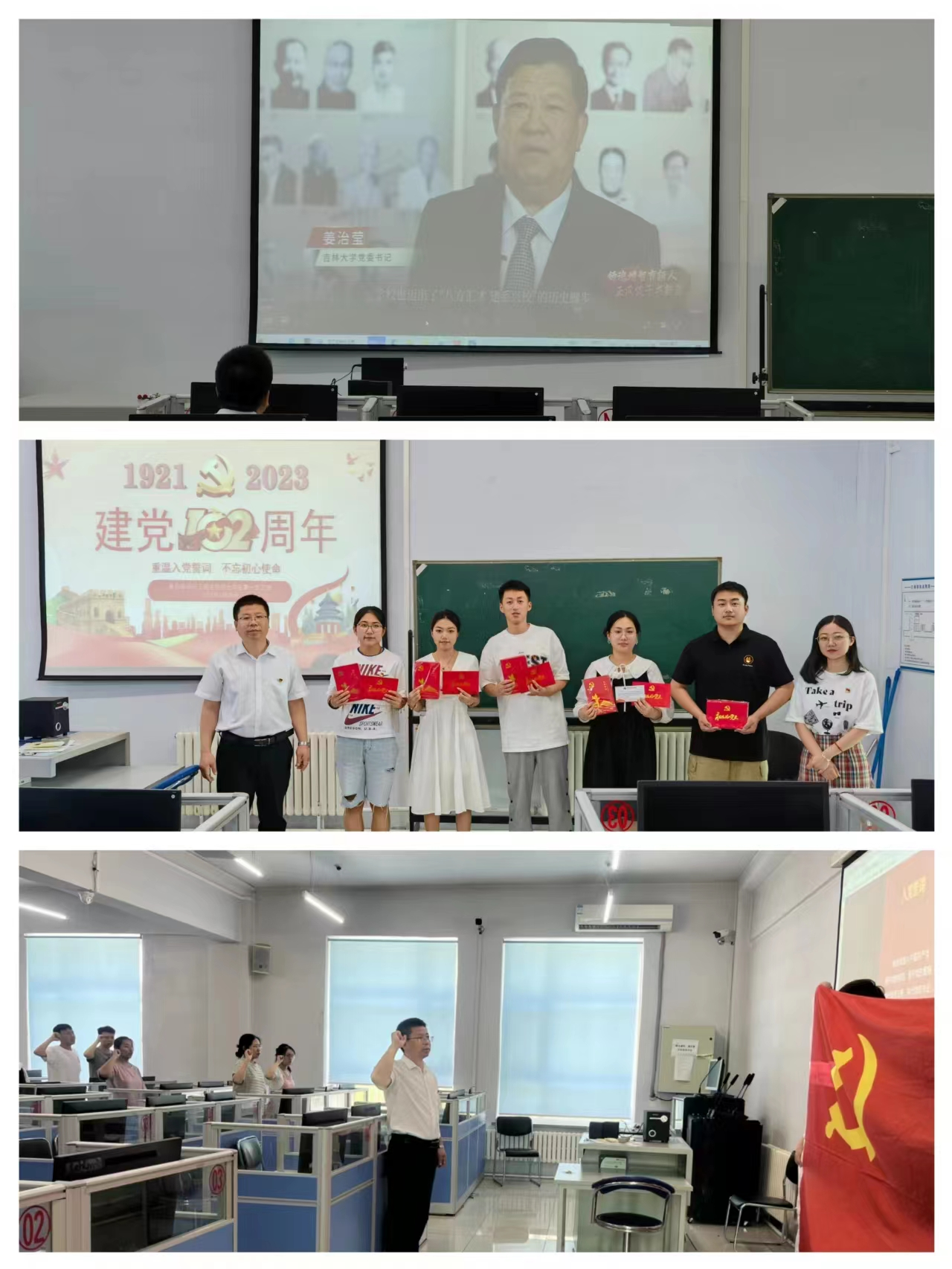 支部为新接收的5名预备党员发放政治生日卡、党员学习笔记本集体过政治生日;由支部书记宫景玉领誓,全体党员重温入党誓词,在鲜红党旗的照耀下,在字字千钧的誓词声中,回望初心,重温了作为一名共产党员的初心与使命,汇聚起矢志不渝跟党走的磅礴力量。